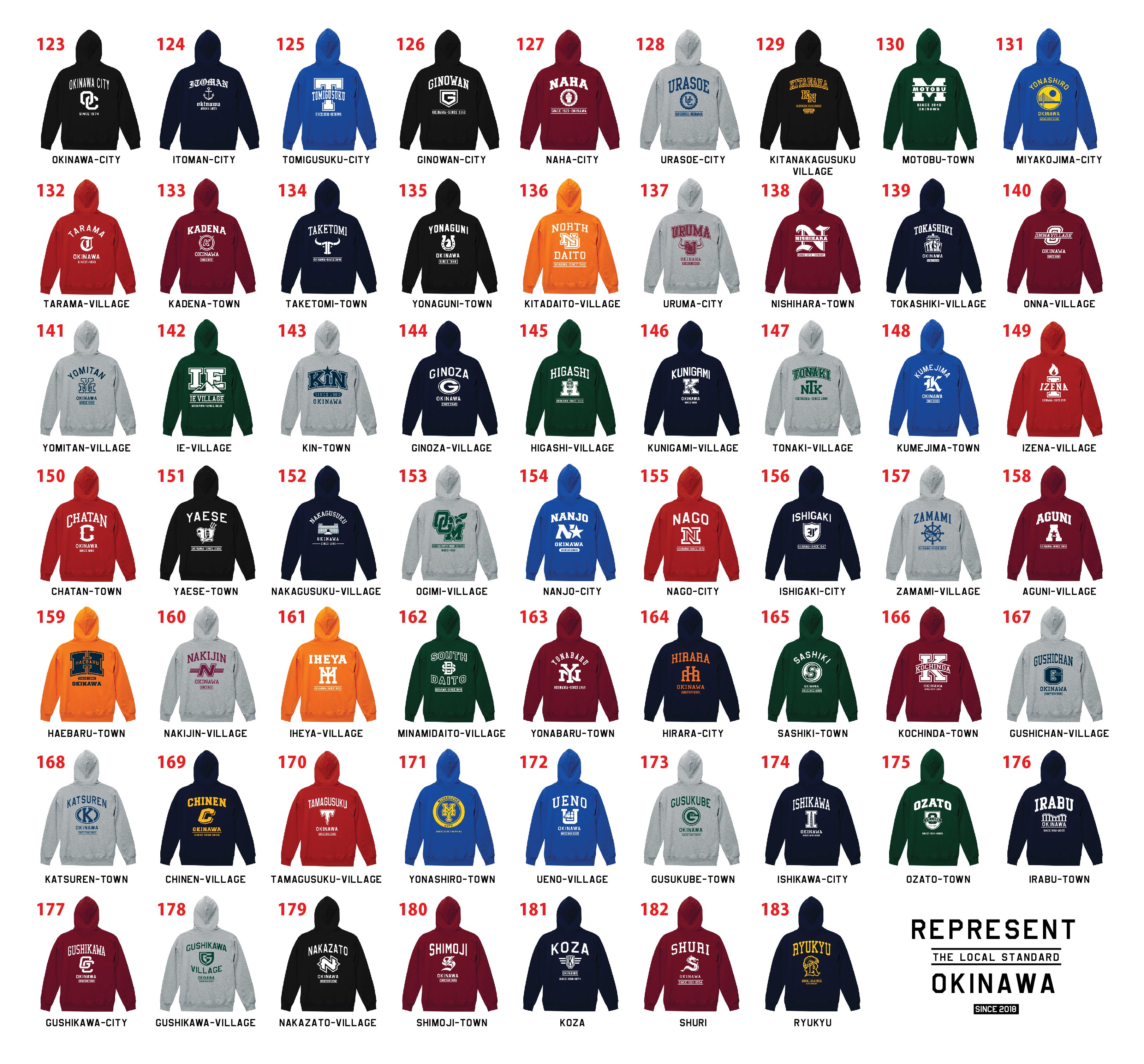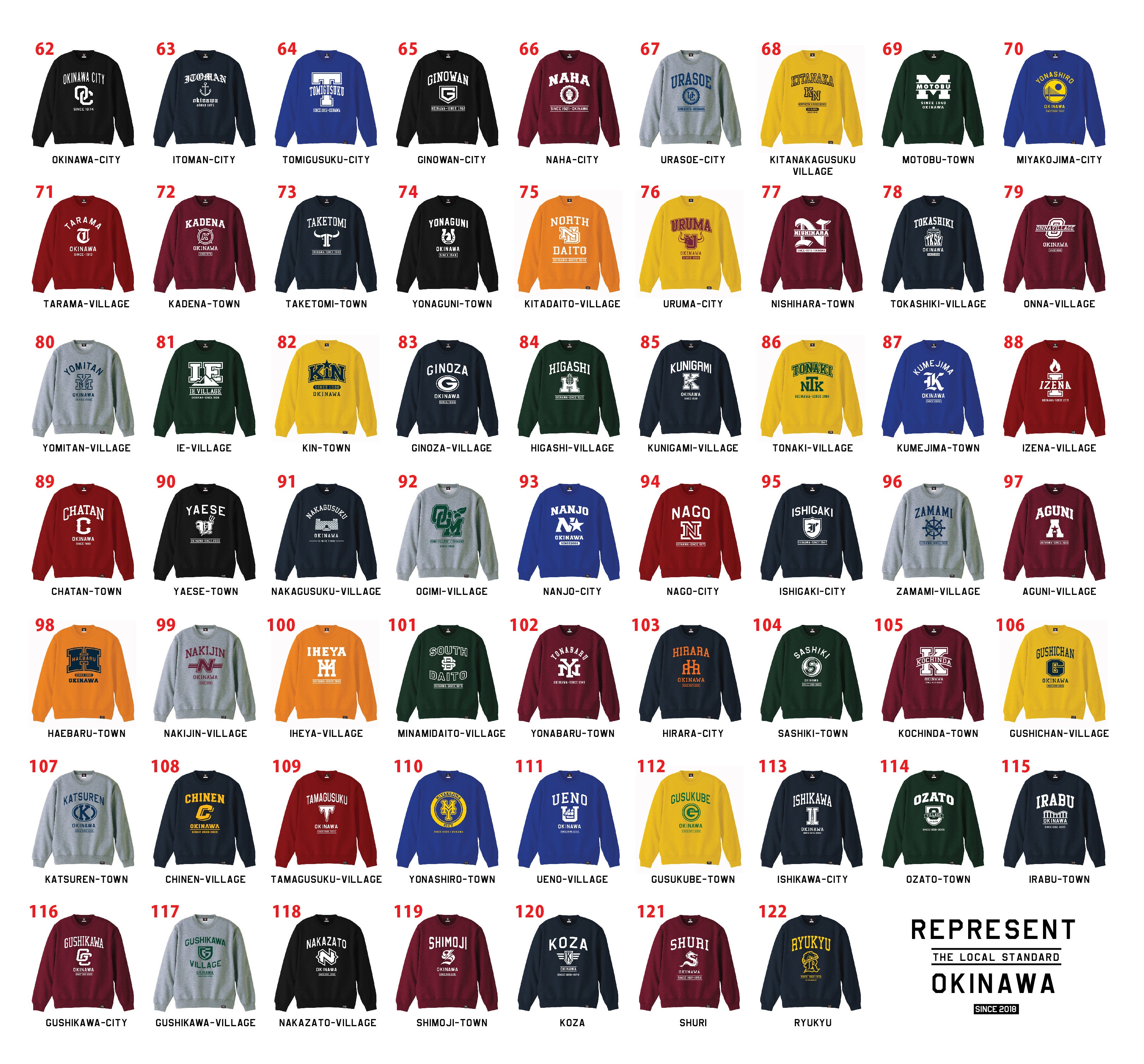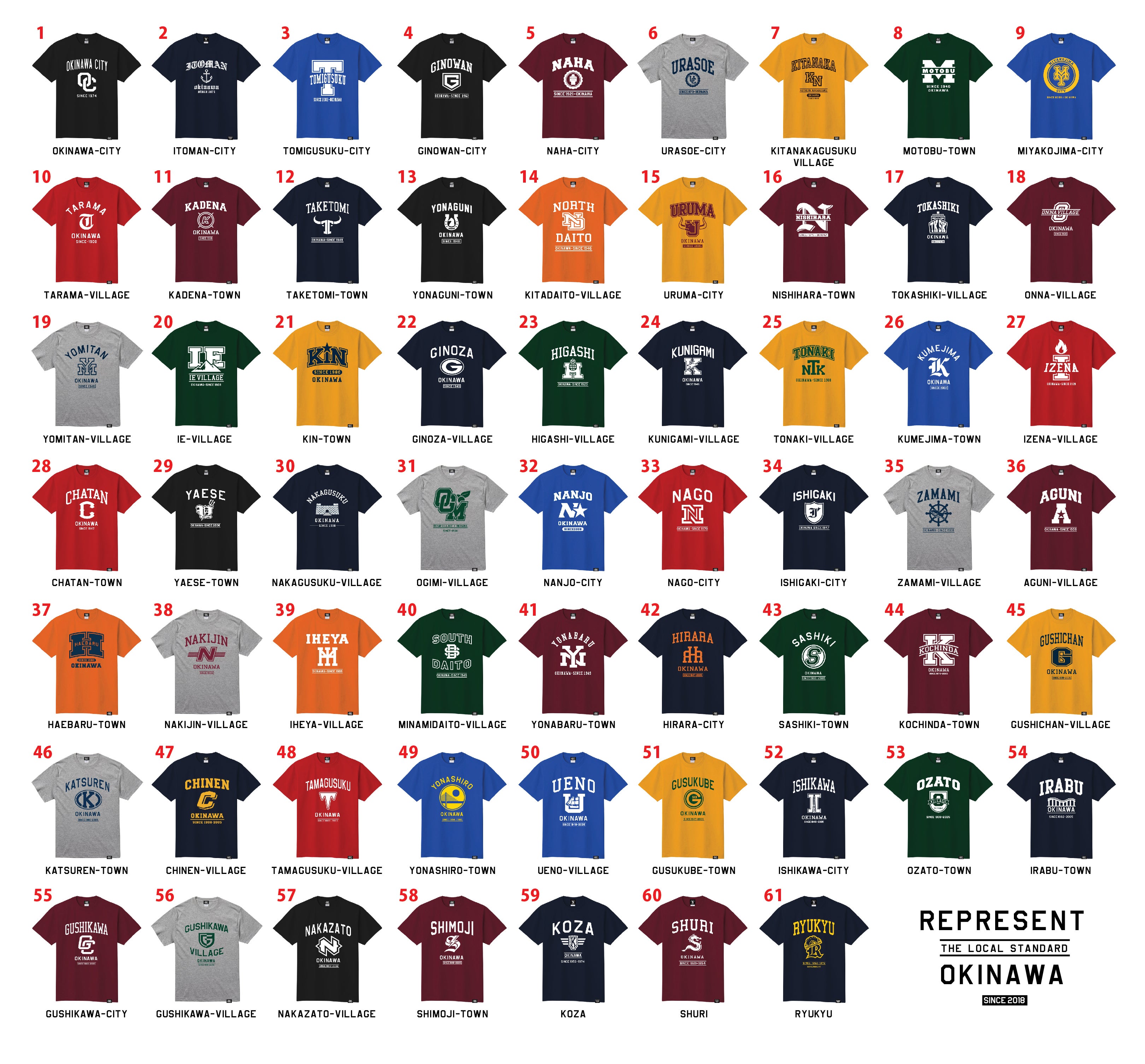 REPRESENT OKINAWAでは、ご希望のデザイン(市町村)をお好きなTシャツのカラー、プリントカラーで制作するというサービスを展開しております。