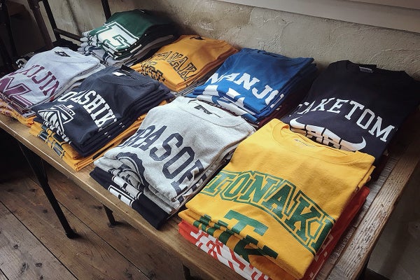 外国の人は自分の出身校や、出身地に誇りを持って堂々と着ているけど、日本人って、出身校や出身地がプリントされてあると恥ずかしくて着づらいんだろうなと。