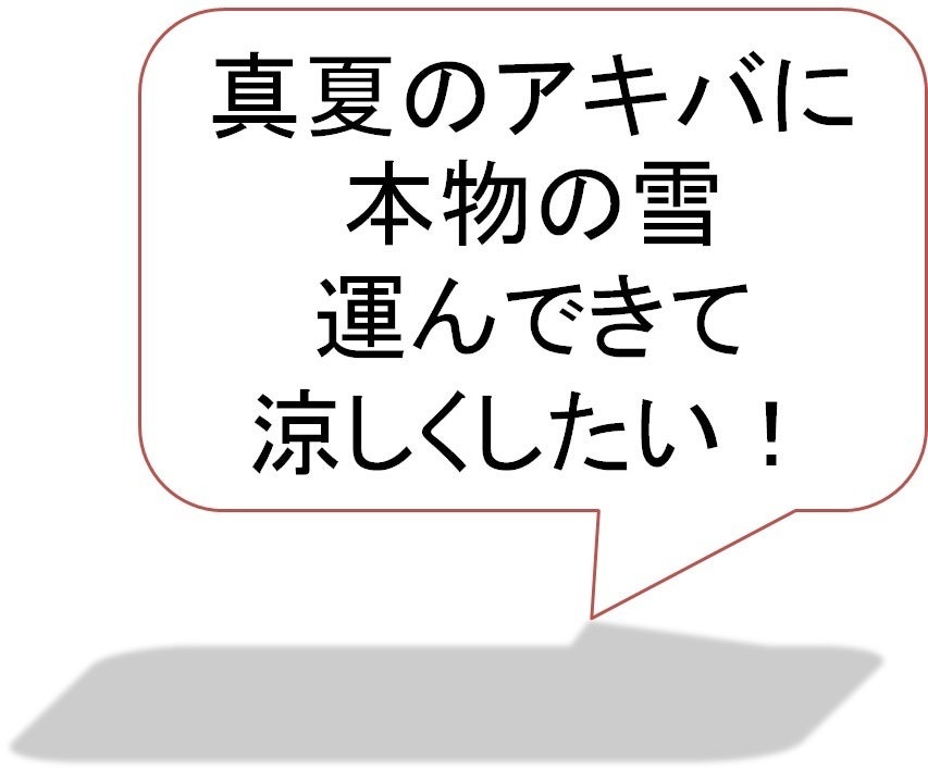 今年の夏に行われる夏葉原で、リアルな納涼を実現すべく、新潟より雪を運んできたいと思っています。我々メンバーは普段から秋葉原や神田地域で地域活性化に資するイベントをお手伝いしています。