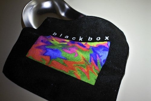 自身がデザインしたBlack Boxというグラフィックをプリントしたハンドタオル