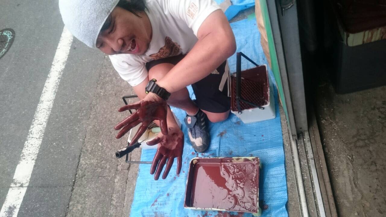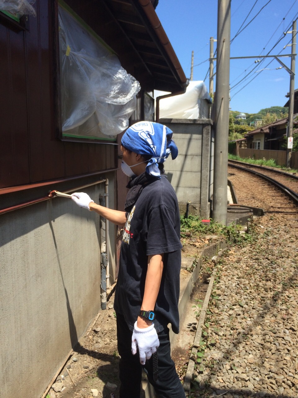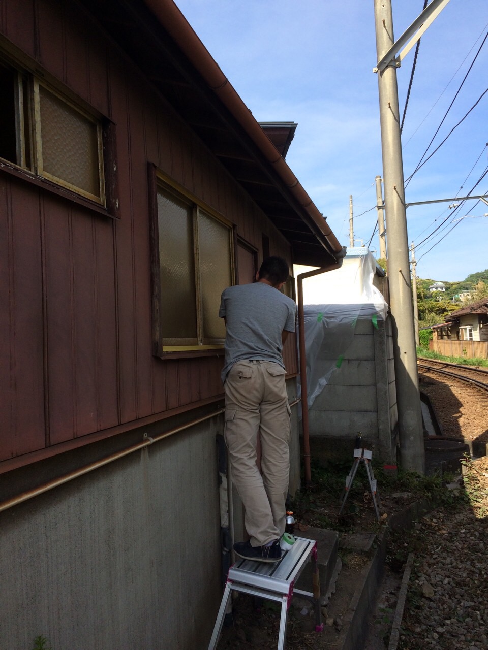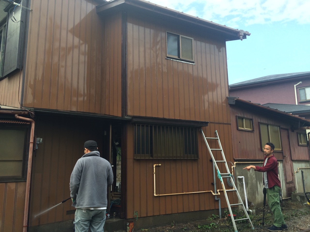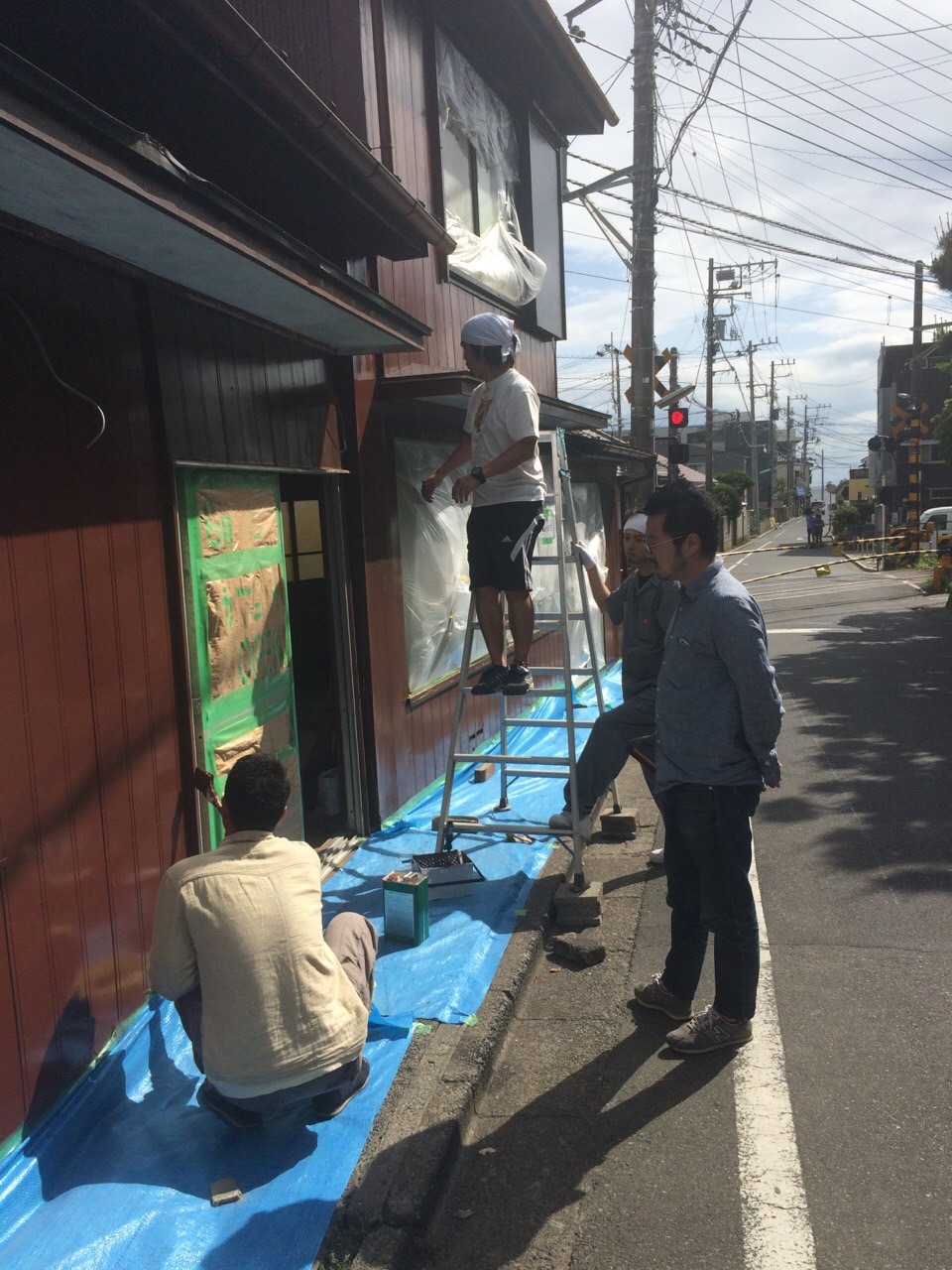 前回お伝えした土間打ちが終わり、次はお店の外観磨きです。
