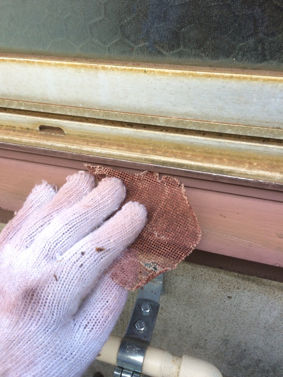洗浄した後は、ペンキの色を均等にのせるために、やすりで磨きます。