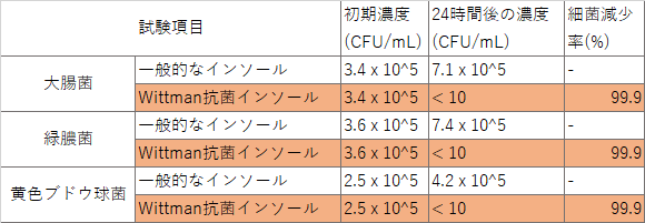 また、下記の通り抗菌性にも優れたインソールで、臭いが残りにくいです。