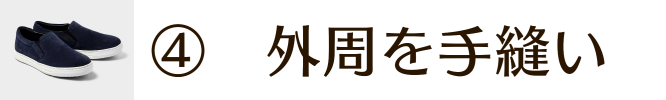スエードとの接着後、再び一針一針手縫いで丈夫さを加えました。