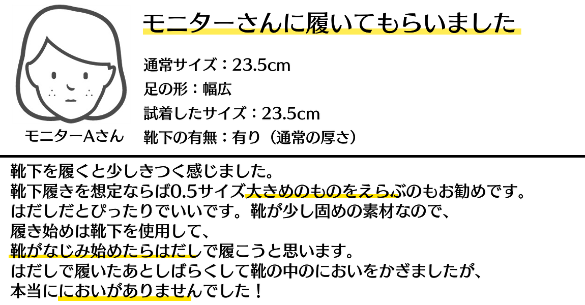 固めに作ってあるため、2サイズで迷っている方はワンサイズ大きめをご指定くださることをおすすめします。