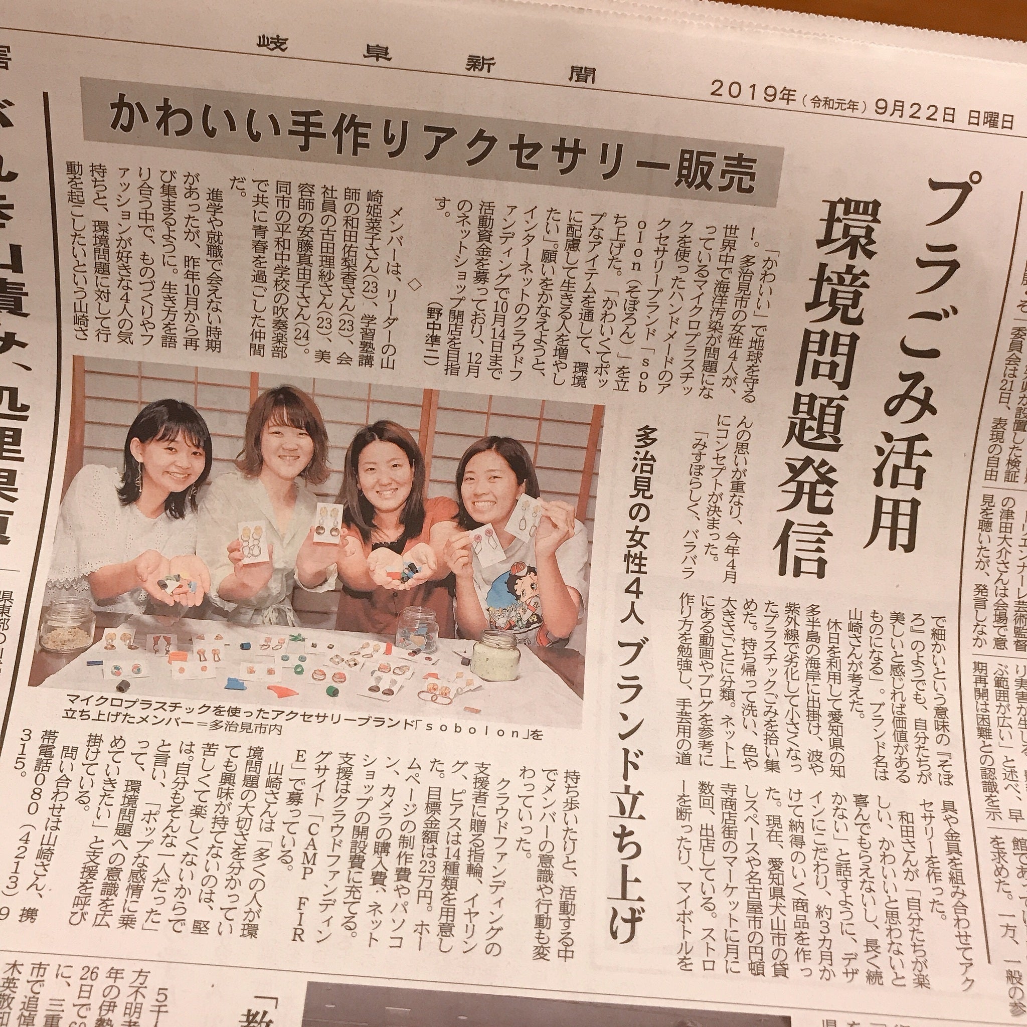 9/22(日)岐阜新聞さんに掲載していただきました!