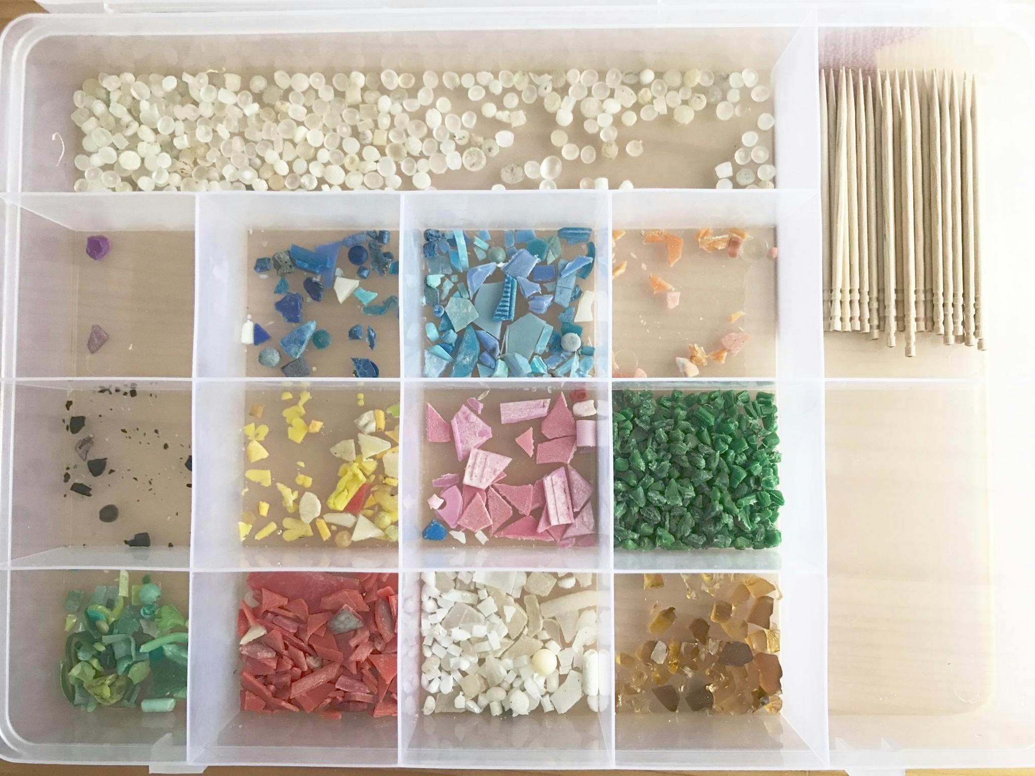 sobolonのアクセサリーには、もともと5mm以下のマイクロプラスチックだけではなく、大きなビーチプラスチックをカットして使ったりもします。