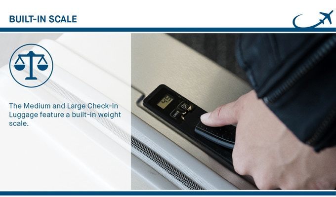Medium Check-in LuggageとLarge Check-in Luggageは、スケール(重量計)が搭載されています。ボタンを押すだけで重量がわかるので、もう空港で重量超過で慌てることはありません。