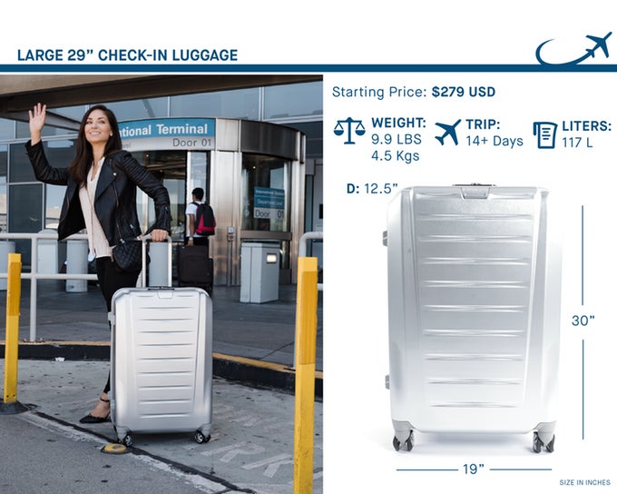 Large Check-In Luggageは、14泊〜用の大型スーツケースです。容量は117L。長期旅行に最適です。スケール(重量計)を搭載しているので、空港で重量超過で慌てることもありません。