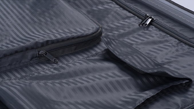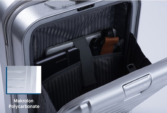 シェルには、軽量で耐久性の高く、ハイエンドのスーツケースでよく使われている、Bayer「Makrolon」ポリカーボネート硬質サイド素材を採用。