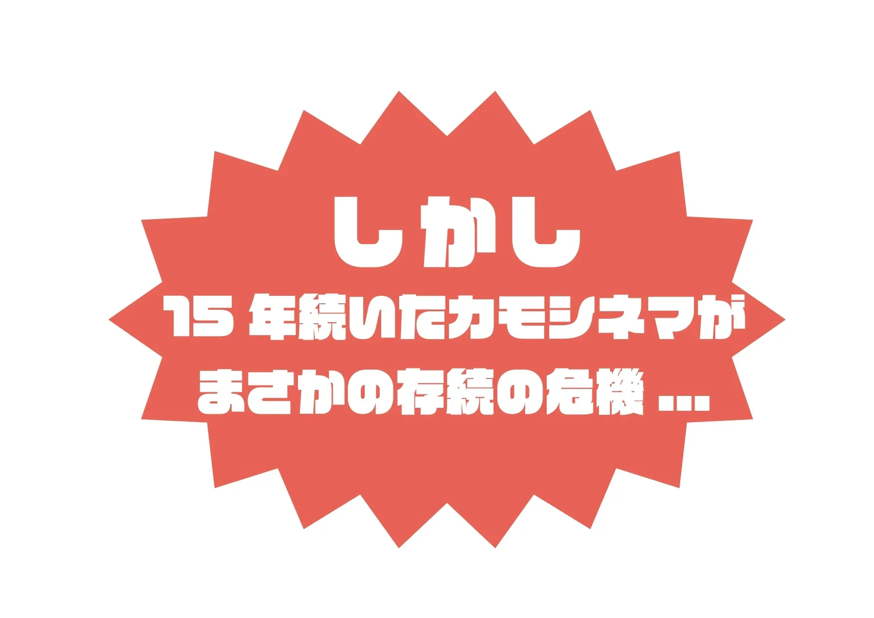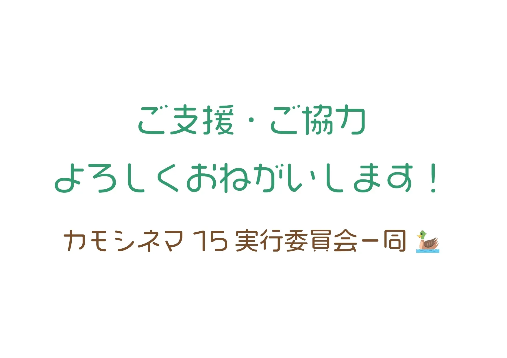 イベントを今年も実施するため、カモシネマをこれからも続けていくため。資金を自分たちでなんとか集めようと思い、クラウドファンディングを利用させていただくことを決めました。皆様の支援が必要です。どうか、よろしくお願いします。