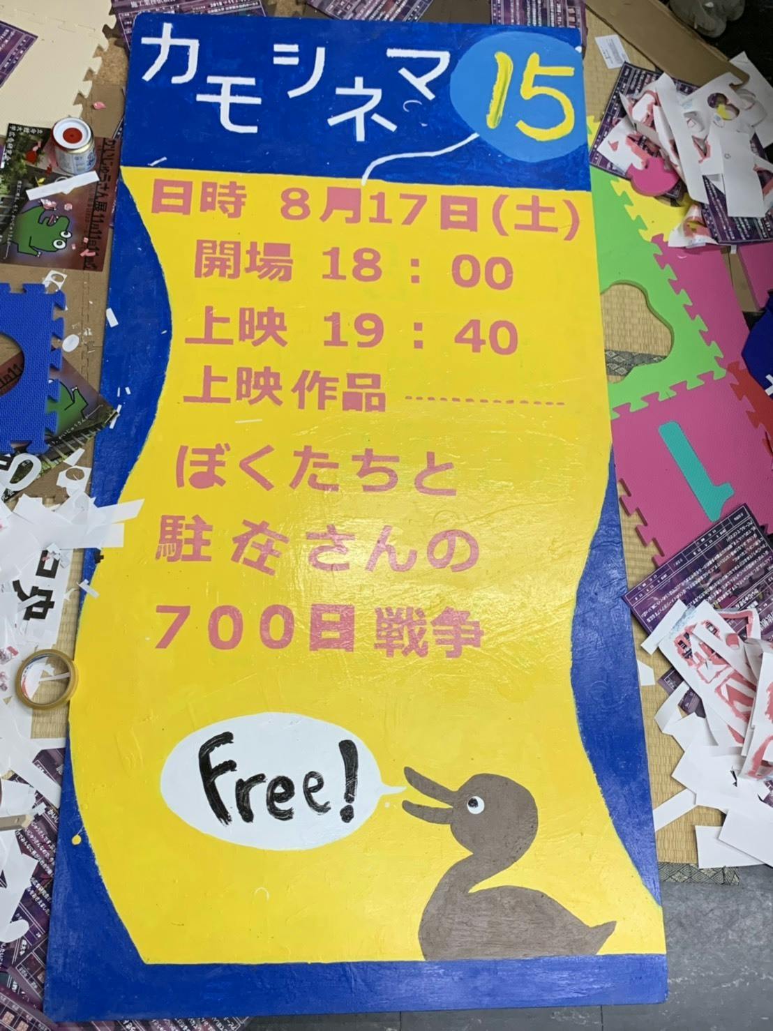 の主に二つの方法で集めていました。しかし、今年から補助金をもらうのが難しい状況になってしまいました……。カモシネマを行うには、大きなスクリーン等の機材を借りる費用や、電気代、上映作品の上映権利代などたくさんのお金がかかります。このままお金が用意できなければ、15年目まで続いたイベントがここで途切れてしまうことになります。