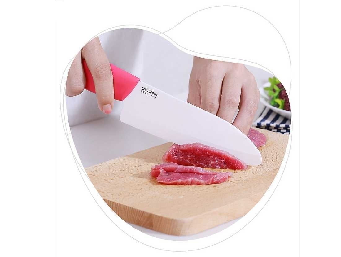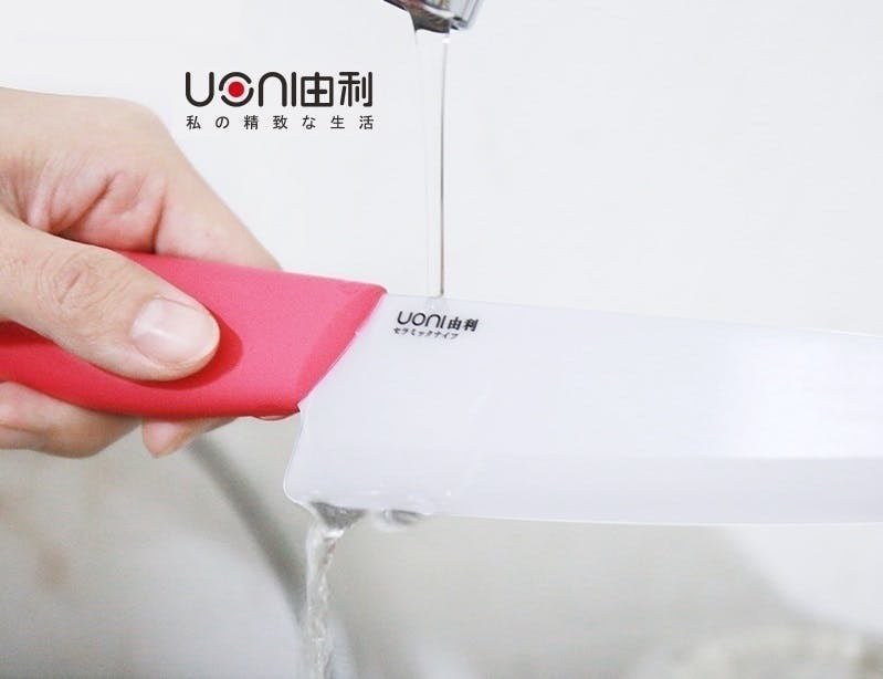 Uoni由利セラミック包丁はジルコニア・ファインセラミックスを採用し、金属に比べとても硬度が高く、普通のステンレスと比べて、耐摩耗性に優れた、錆びません。切れ味も長く続きします。