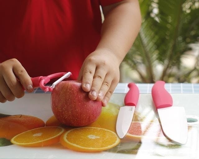 ステンレスの包丁を使うと、金属の成分と果物の果汁が反応して、皮むきした面や切った面が変色しまいました。でもセラミック包丁なら、ほとんど変色ありません。