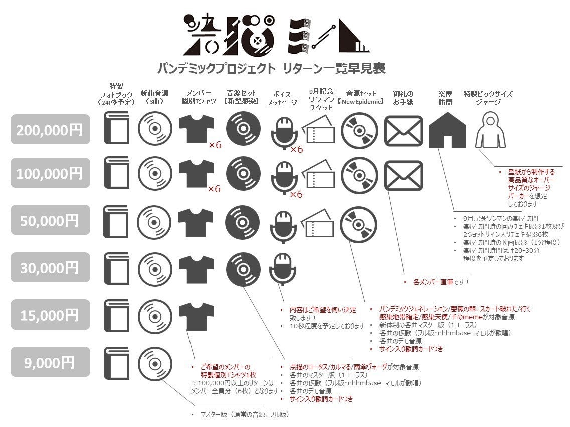 ※リターンの「・9月記念ワンマンチケット」の日程は「-9/28 都内 夜帯公演 」との記載となっておりますが、「-9/29 都内 夜帯公演 」に変更となりました、ご了承くださいませ