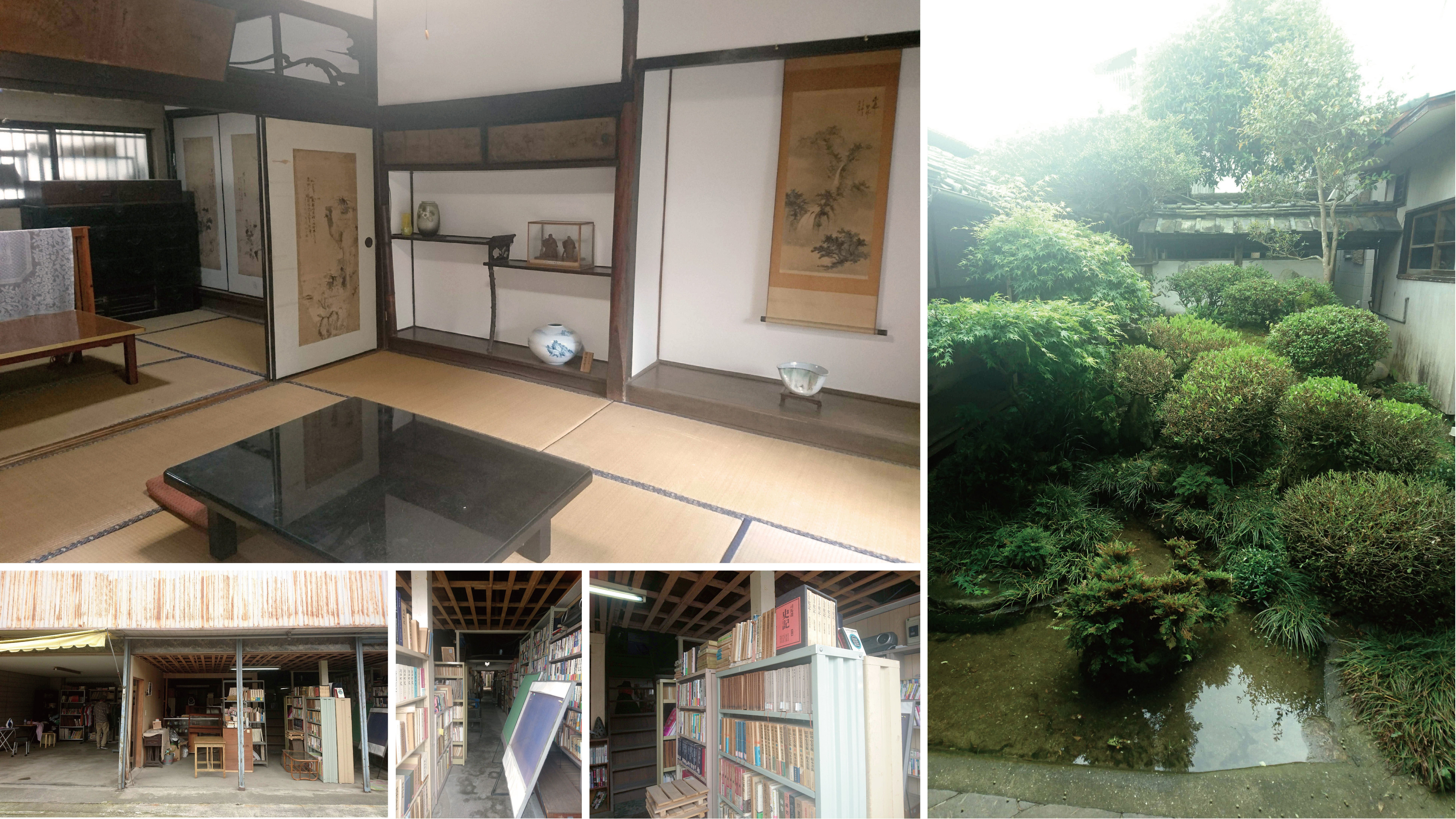 「1万冊を超える古本」に囲まれた、明治建築の町屋。アコースティックライブも時折開催される鉄骨製の倉庫も。裏庭に作られたフレンチガーデンは、オーナーさんが若かりし頃に留学したフランスモデル。最寄りの「小川駅」から徒歩20分。周辺には大型ショッピングセンターや24時間営業のスーパーも。