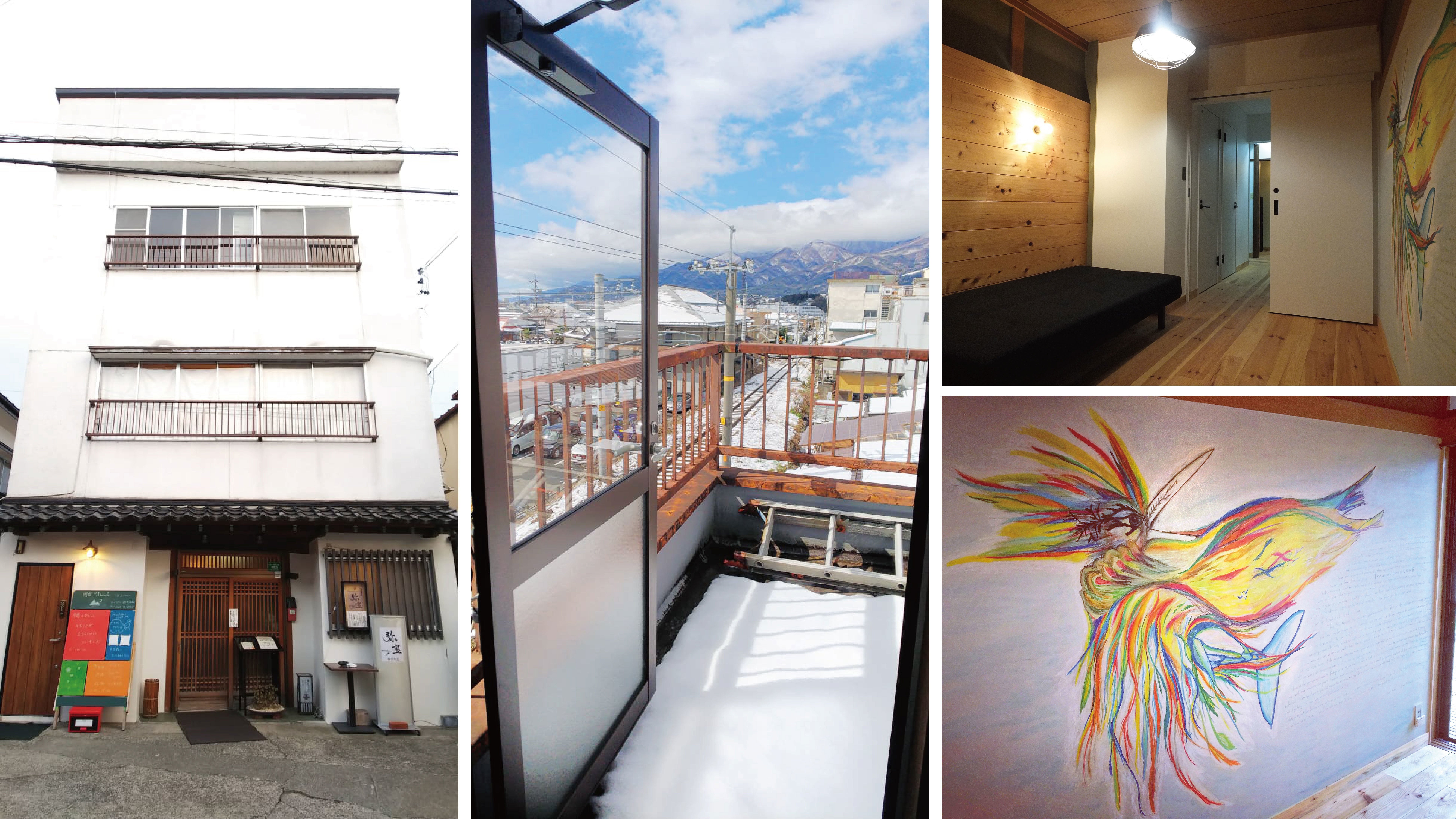 1階が地域食材を活用する板前割烹、2階がまちやどスタイル(簡易宿泊所)の複合型施設があり、ADDress拠点は3階。南アルプスを一望するランドビューが眼前に広がります。地元の学生や移住者らを中心にまちおこしをしていて、数多くの飲食店、陶芸工房や雑貨店などがオープン。高速バスターミナルすぐ近く。