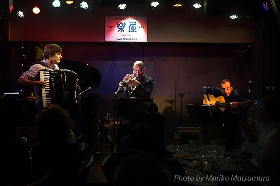 7/9(火)初日ライブは神保町楽屋にて、リオの雰囲気を感じていただきたく、3人だけの演奏を企画しました。楽屋に着くと、さて今日は何を演奏しようかと(まさに彼らのスタイル)サウンドチェックのみのリハなし。リオの香りたっぷりの演奏いかがでしたか。彼らの夢、私の夢が実現した日。初日にいらしたお客様がこの日の感動をFacebookなどで拡散し、翌日7/10(水)OSOゲスト出演ライブも大成功。