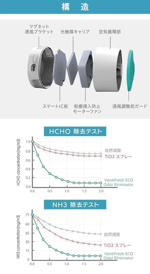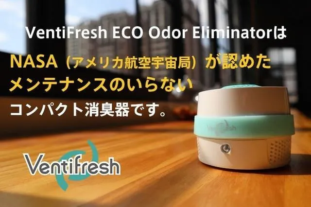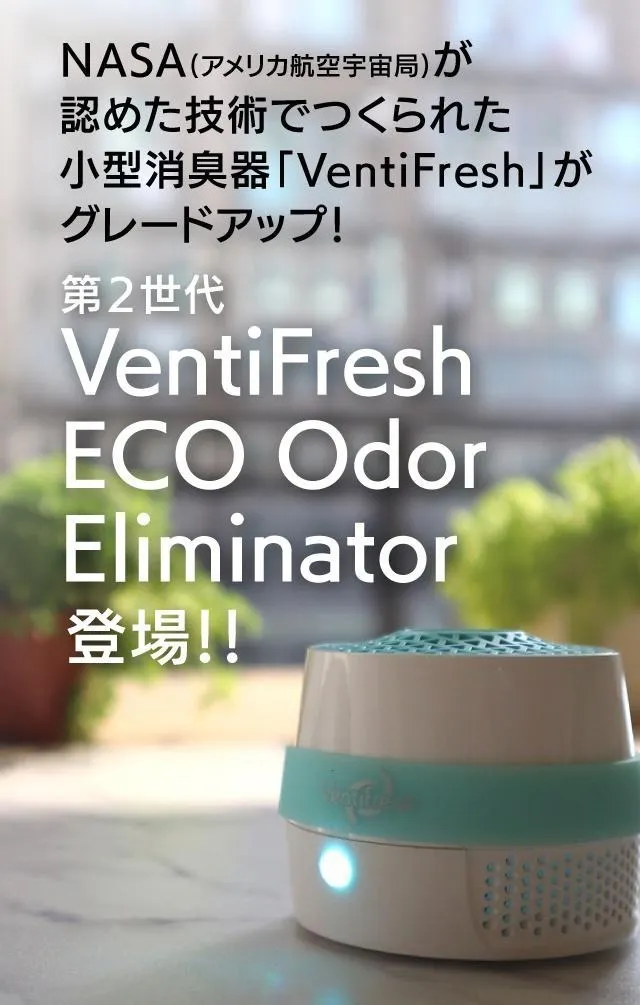 ※VentiFresh ECO Odor EliminatorはNASAとSpinoffの関連会社ではありません、また、技術面の関わりもありません。本文で言及した全ての商標と名称およびサービスは各々の所有者が所持しています。