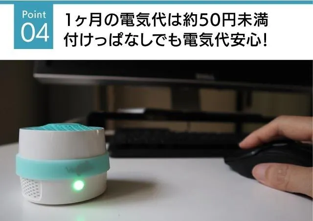 24時間ずっと稼働し続けても、1ヶ月の電気代は約50円未満。