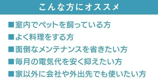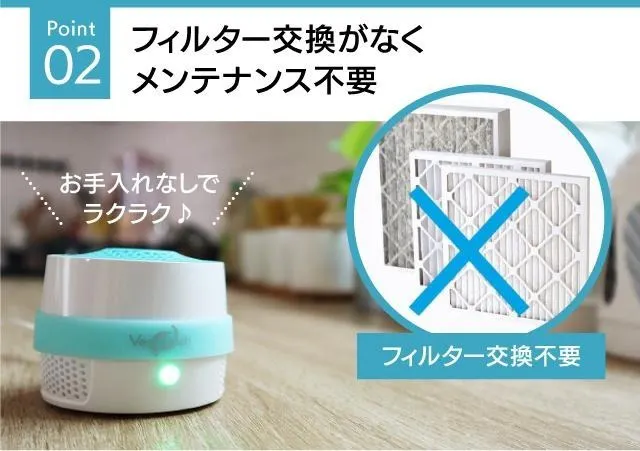 フィルターがないので、面倒な手入れやメンテナンスが一切不要。