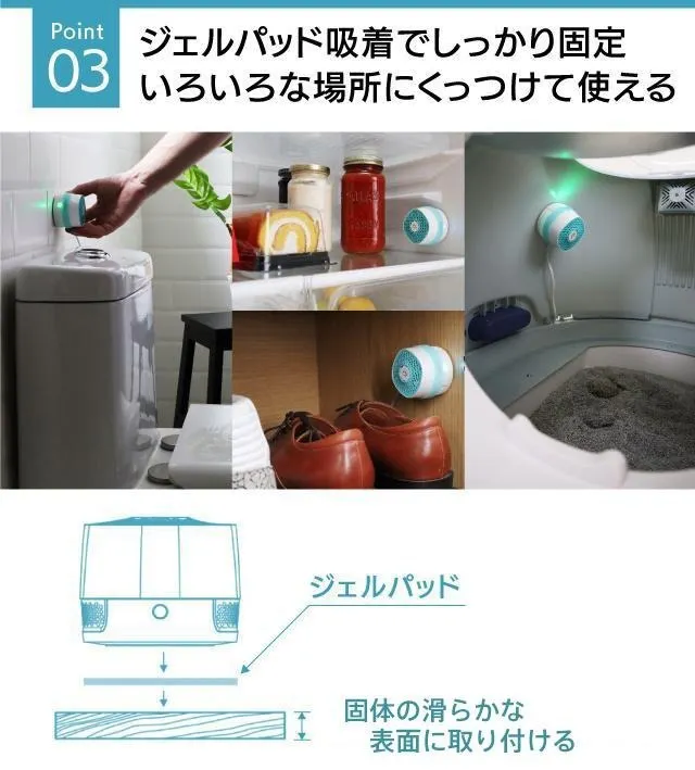 付属のジェルパッドを使えば、トイレの壁やゴミ箱の上蓋などに吸着。