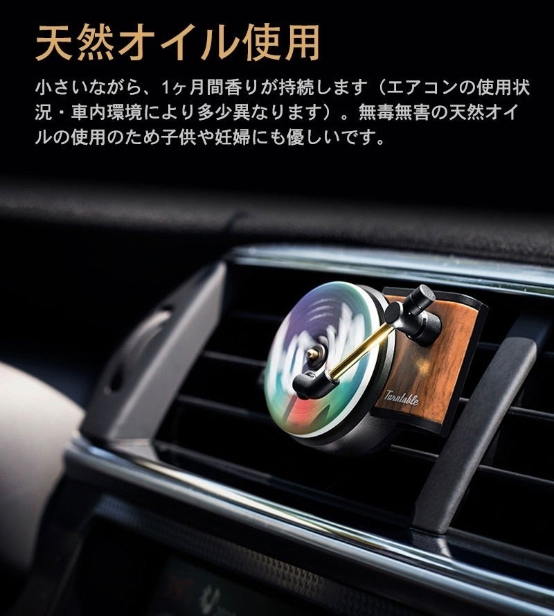 送風口に取り付けることでレコード盤が実際に回転し、香りを効率よく発散。レコードが回るその見た目も醍醐味の一つです。