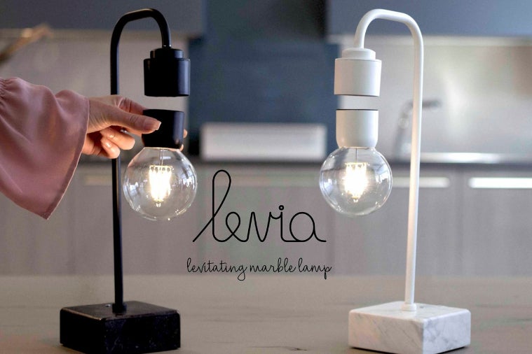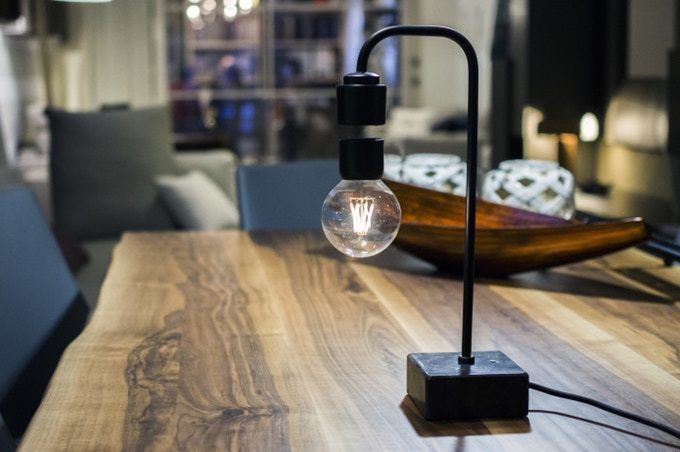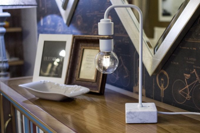 電球が宙に浮いたまま点灯する卓上ランプ「Levia」とは