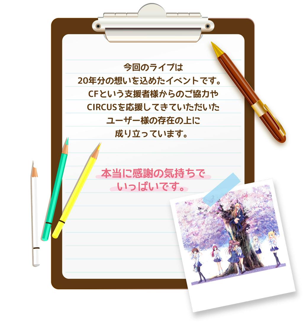 ここまで来ることが出来たのは、CIRCUSとダ・カーポを支え続けてくださった皆様のお陰です。