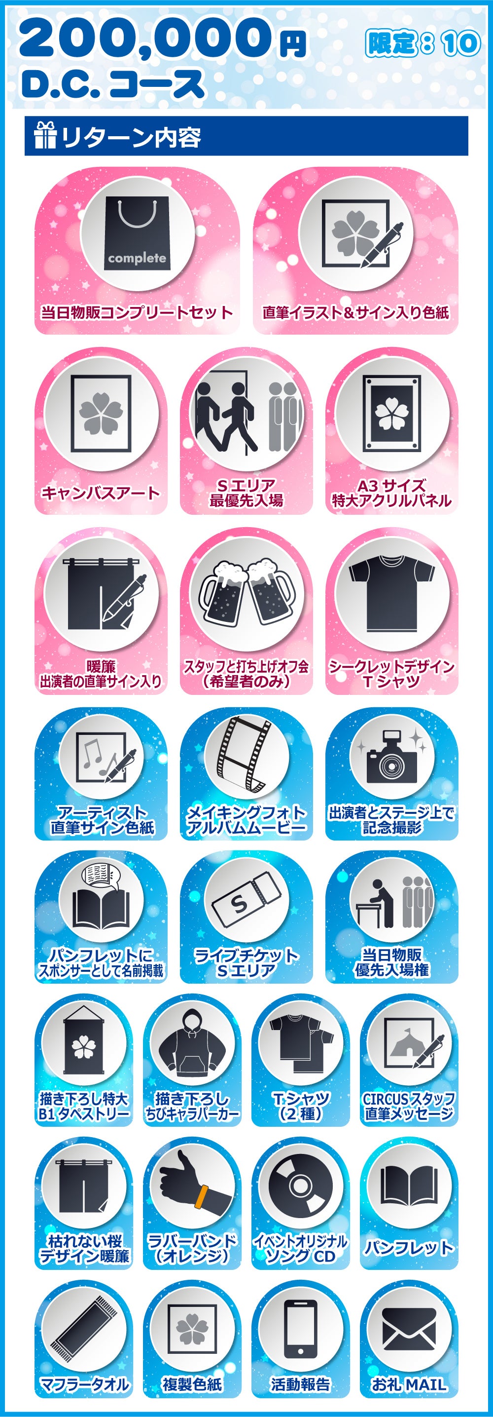 CIRCUSの代表作である『D.C.~ダ・カーポ~』シリーズは、 こだわり続けた音楽に多くの方々から大変な評価をいただき、 「ライブを開催して欲しい!」という数多くのリクエストもいただいて来ましたが、 ここ10年、大きな規模のものは2015年に開催された『D.C. SUPER LIVE ~ダ・カーポ スーパーライブ~』のみでした。