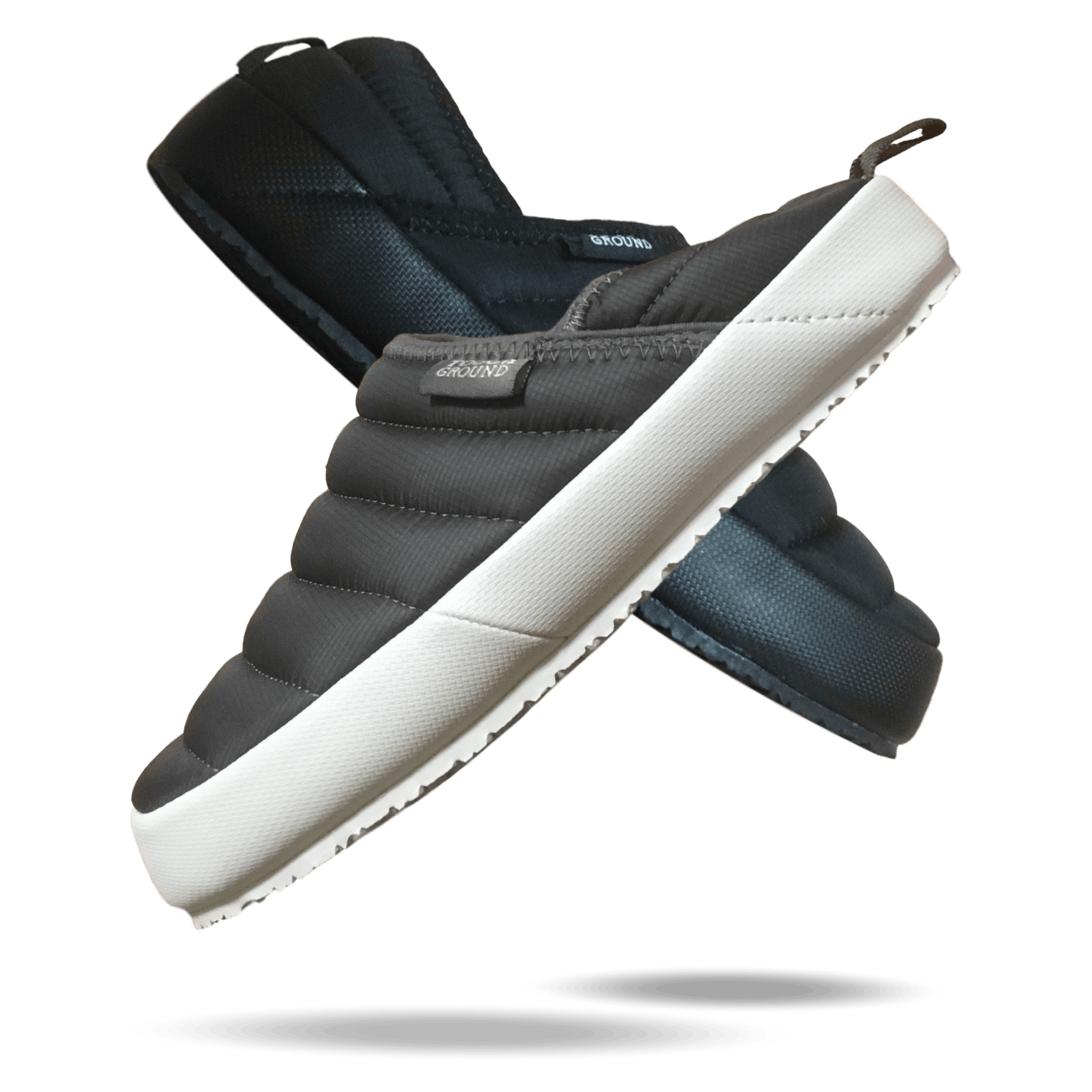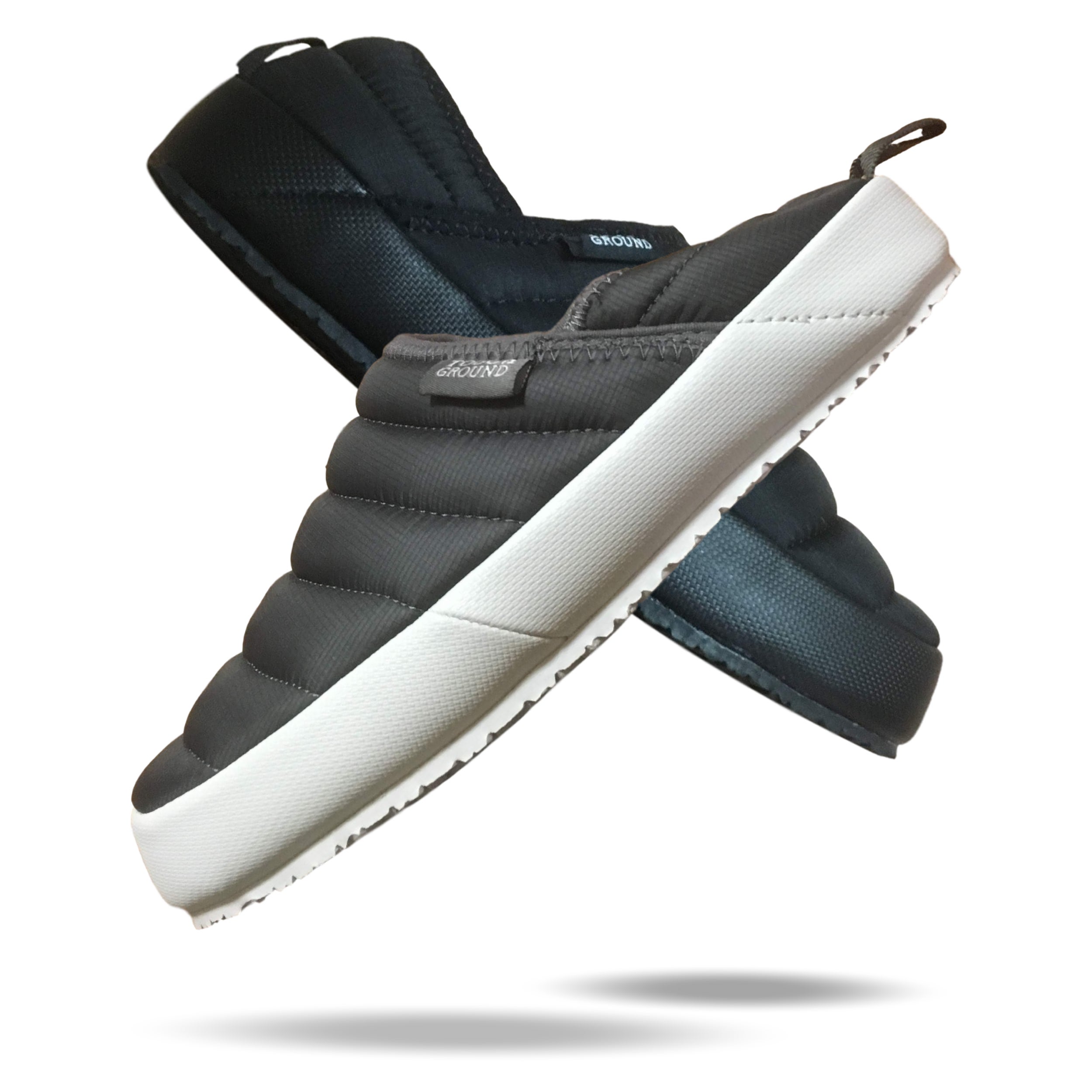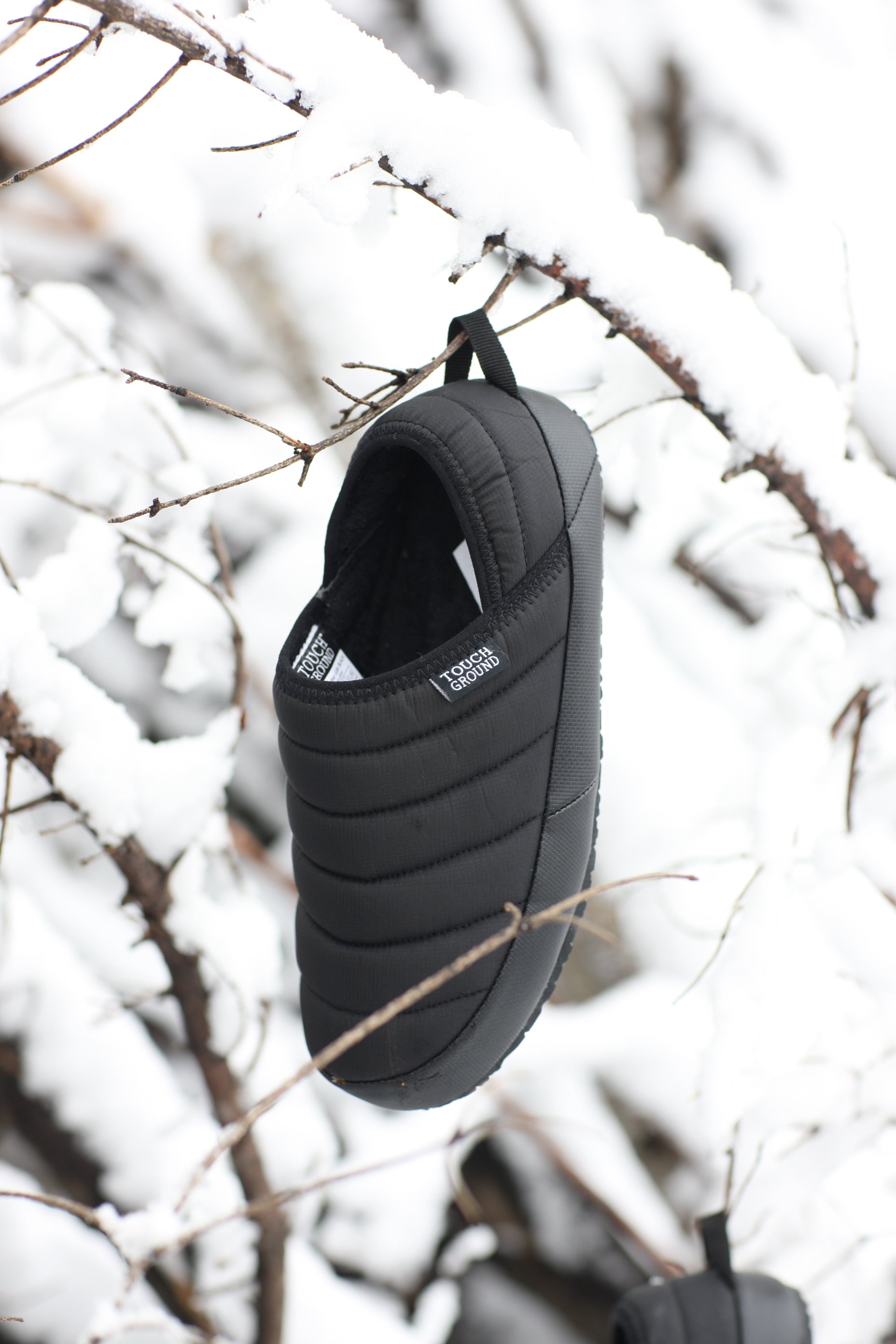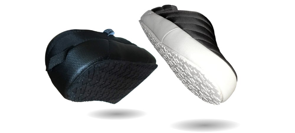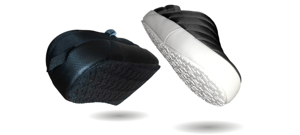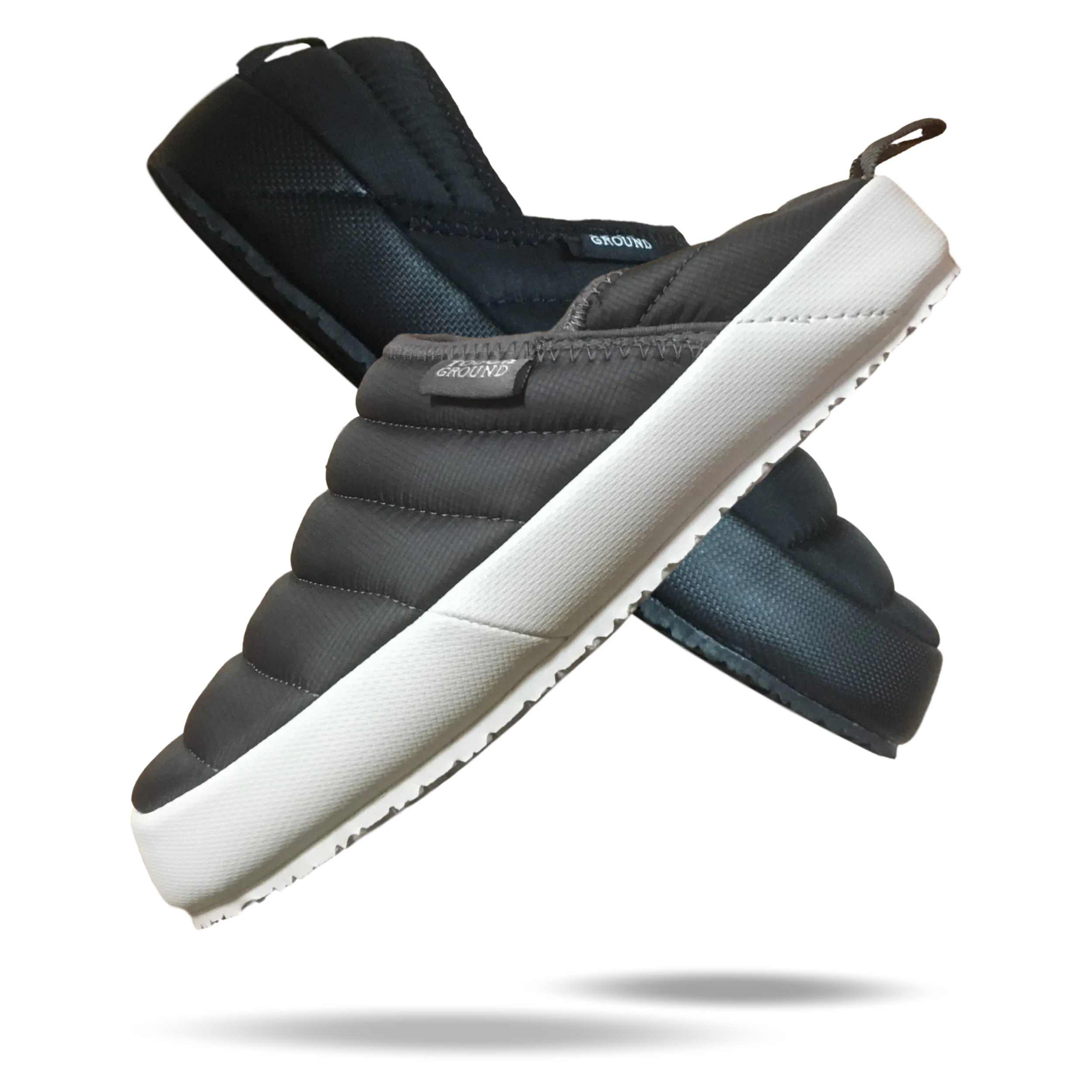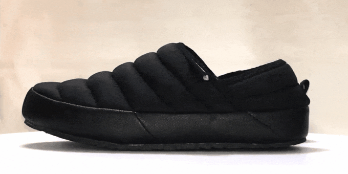 高級ダウンウェアにも使用される軽量ナイロンを使用して、厚断熱材コットン補強材を挿入したバンハンファです。屋内・屋外兼用を意識し安易にかかと部分を踏んで履けるようデザインされています。