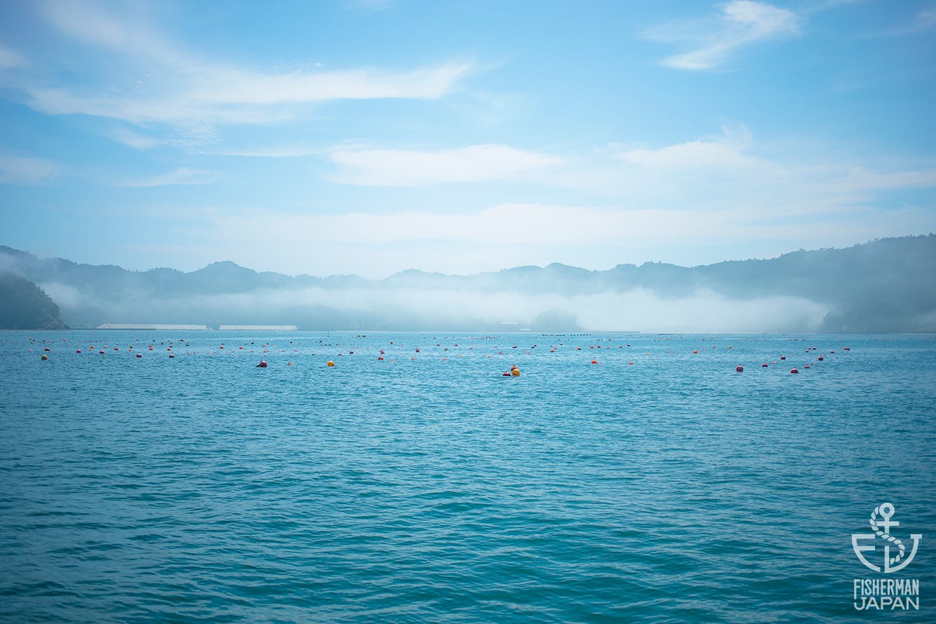 今回のホヤは、宮城県石巻市牡鹿半島にある鮫浦からお届けします。鮫浦湾は山に3方を囲まれた内湾になっていて、山から栄養たっぷりの淡水が流れ込み、海水と絶妙に混じり合う、養殖には抜群の漁場として知られています。
