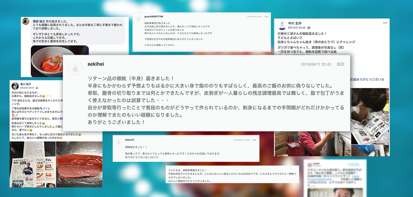 このプロジェクトでは、皆さんからいただく応援の言葉や「美味しい」という感想のひとつひとつが、若い新人漁師の背中を押します。背中を押された漁師は、新しい挑戦を始めたり、より丁寧な仕事にこだわったり、食べてくれる人のことをさらに考えるようになります。