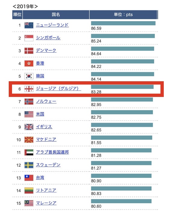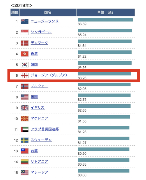 日本では決して知名度が高いとは言えないジョージアですが、ビザを取得せずとも365日滞在が認められており、フリーランスとして滞在するための労働許可を取得することも容易で、さらに世界銀行のビジネス環境ランキングで世界6位にランクインしています。