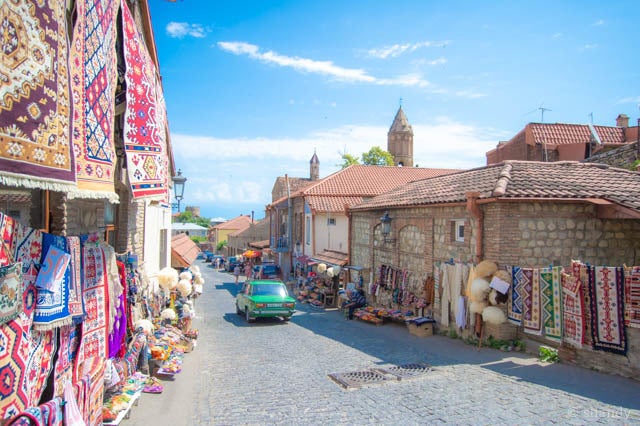 他にも城壁に囲まれたオレンジワインの名産地シグナギへはローカルの乗合バスで片道240円で行くことができます。