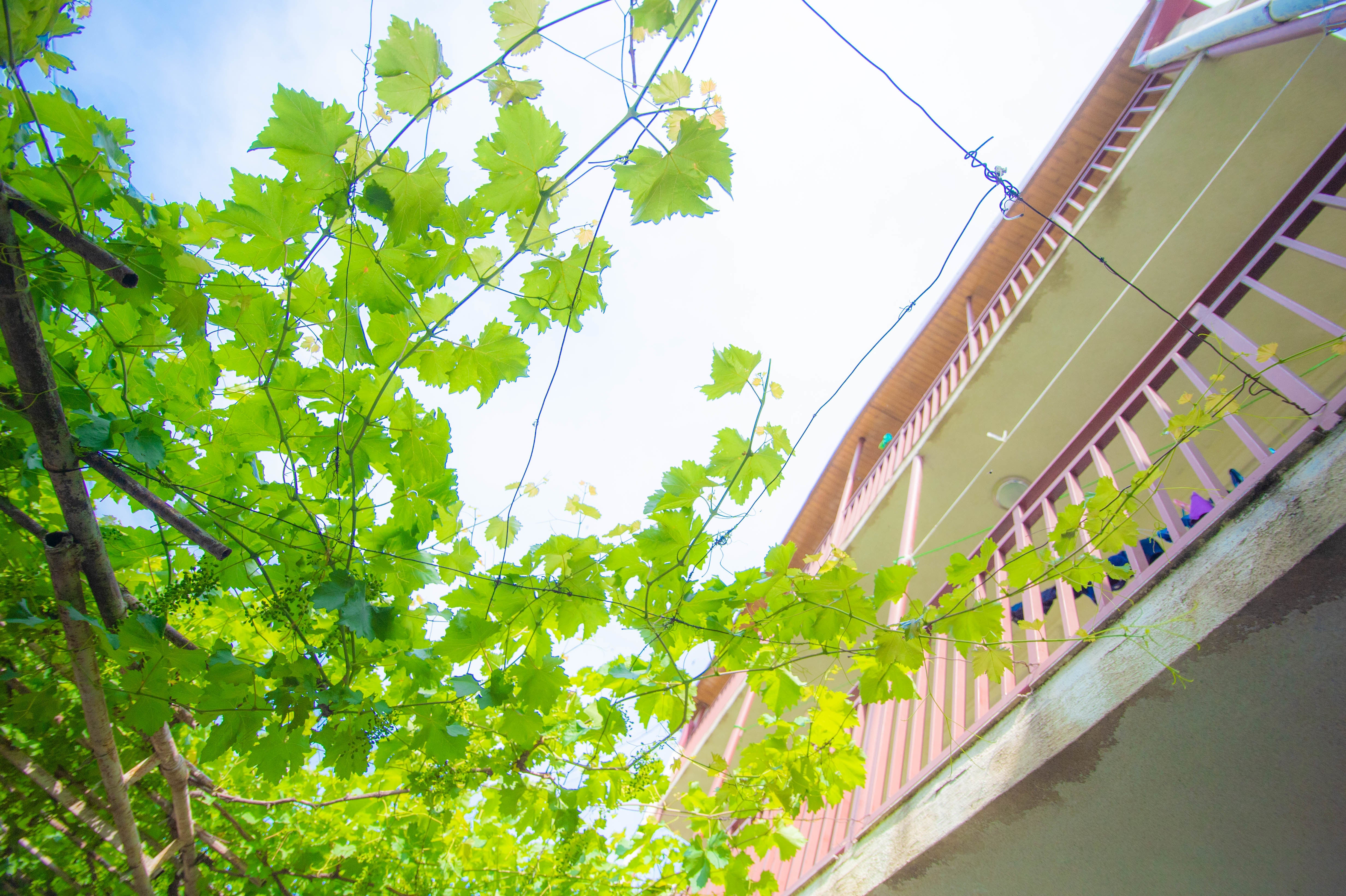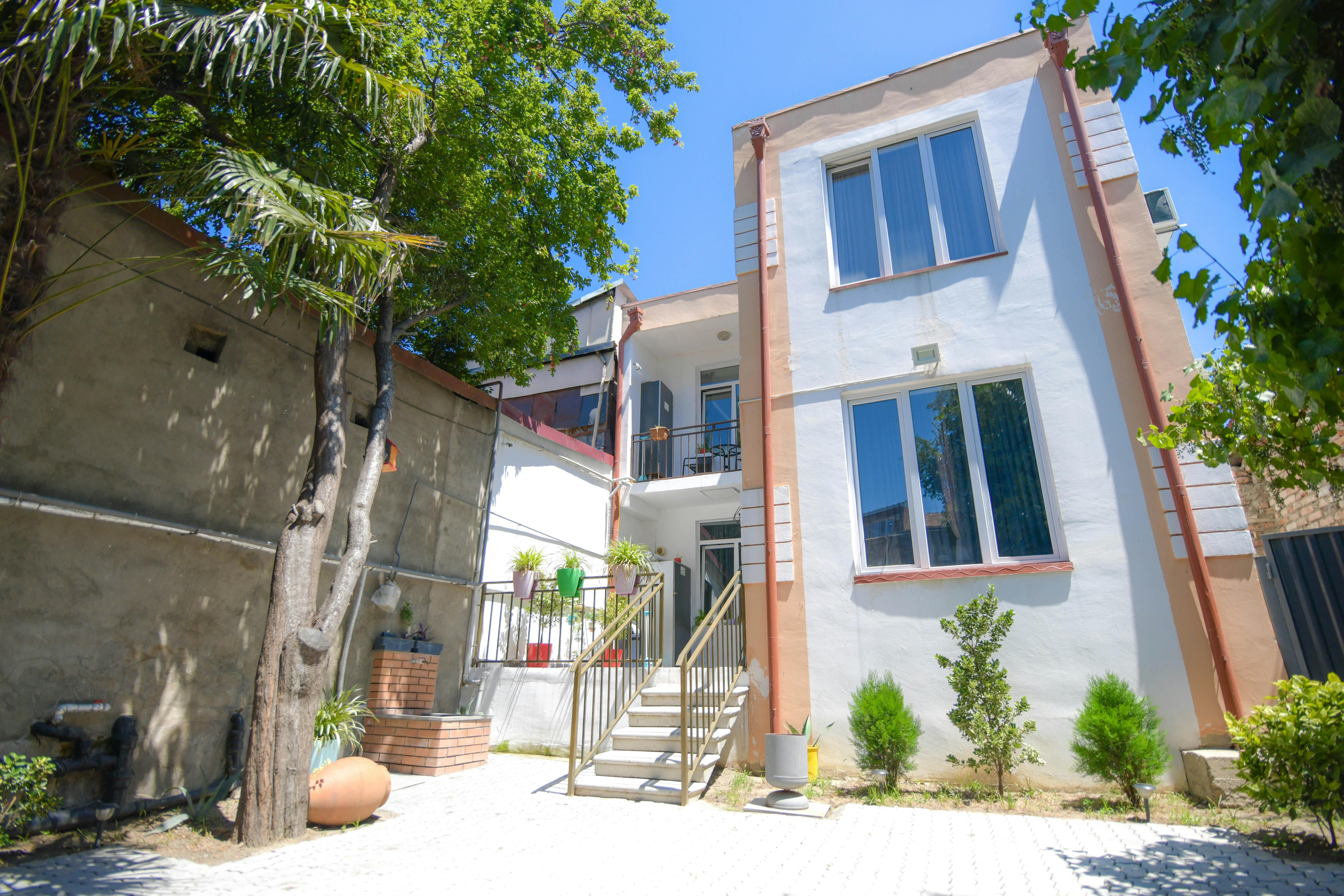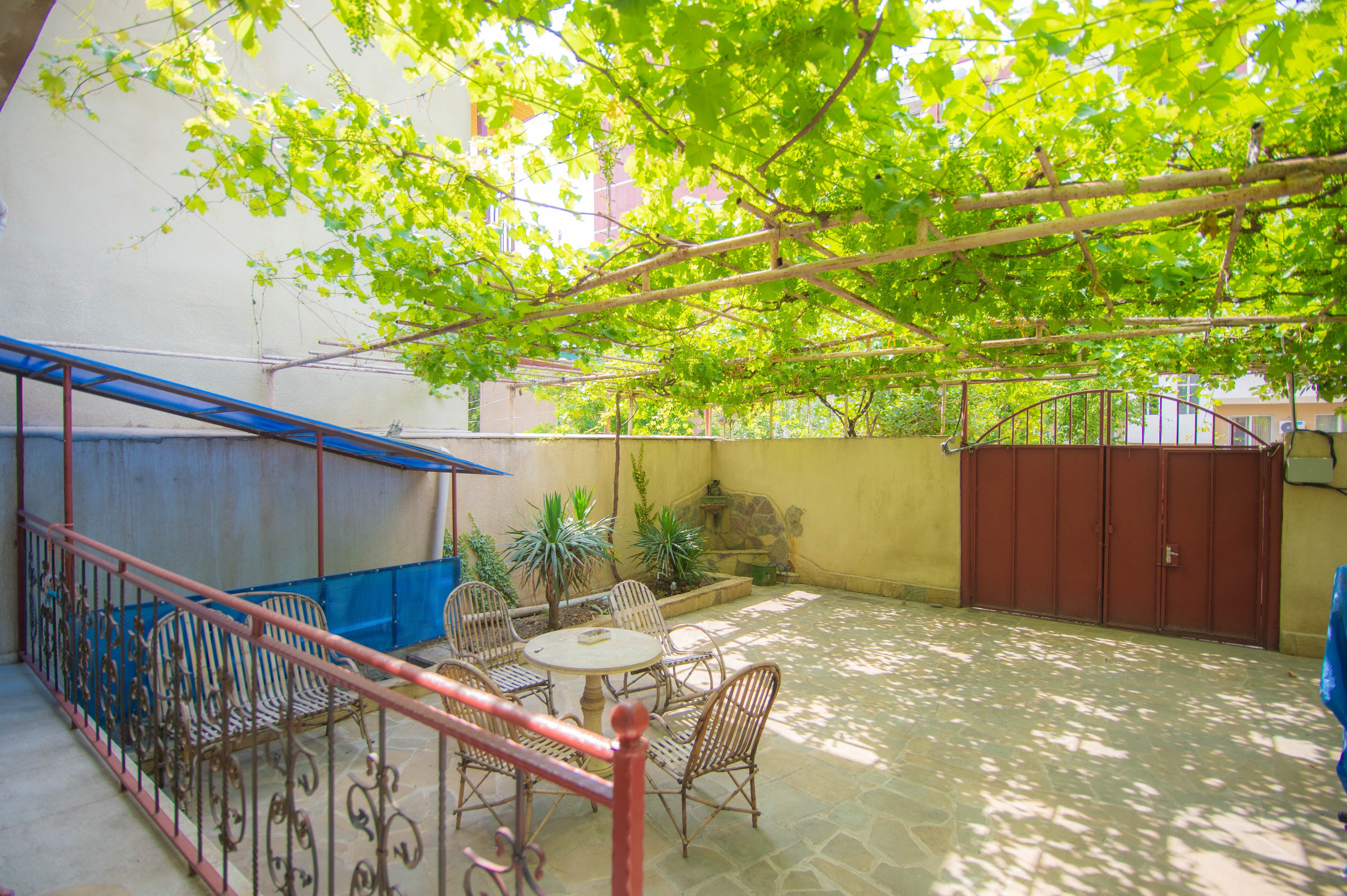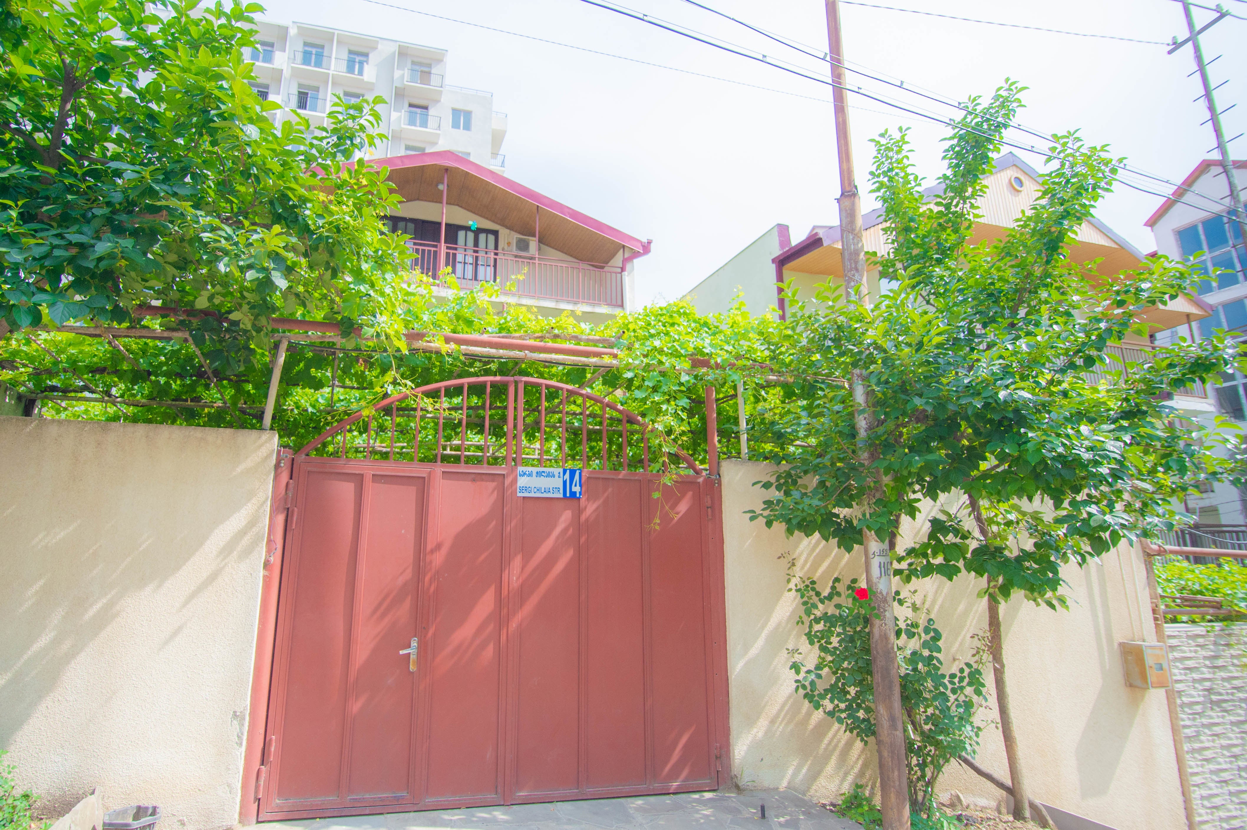 地下鉄のゴチリゼ駅から徒歩3分ほどの距離にあり、玄関の門から建物の間には約100平米のブドウの木が植えられています。