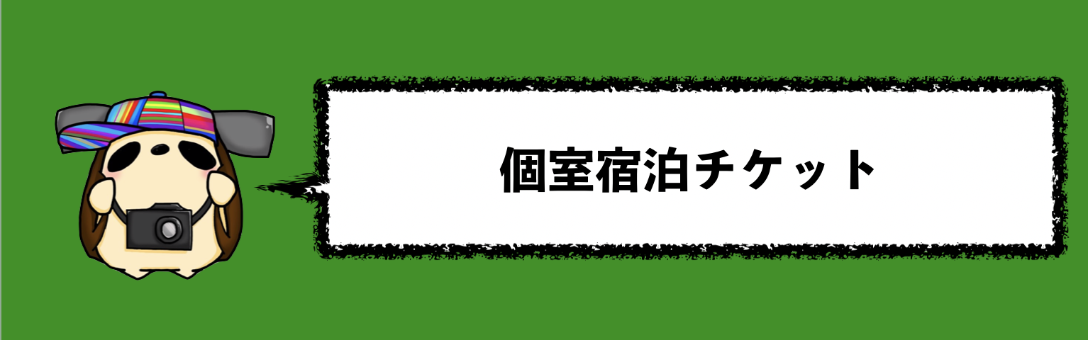 本人以外でも利用可能な個室宿泊チケットとなります。1泊から利用可能。個室は1-3名様まで利用可能。空室状況によりご予約をうけかねる場合がございますので、お早めのご予約をお願いします。