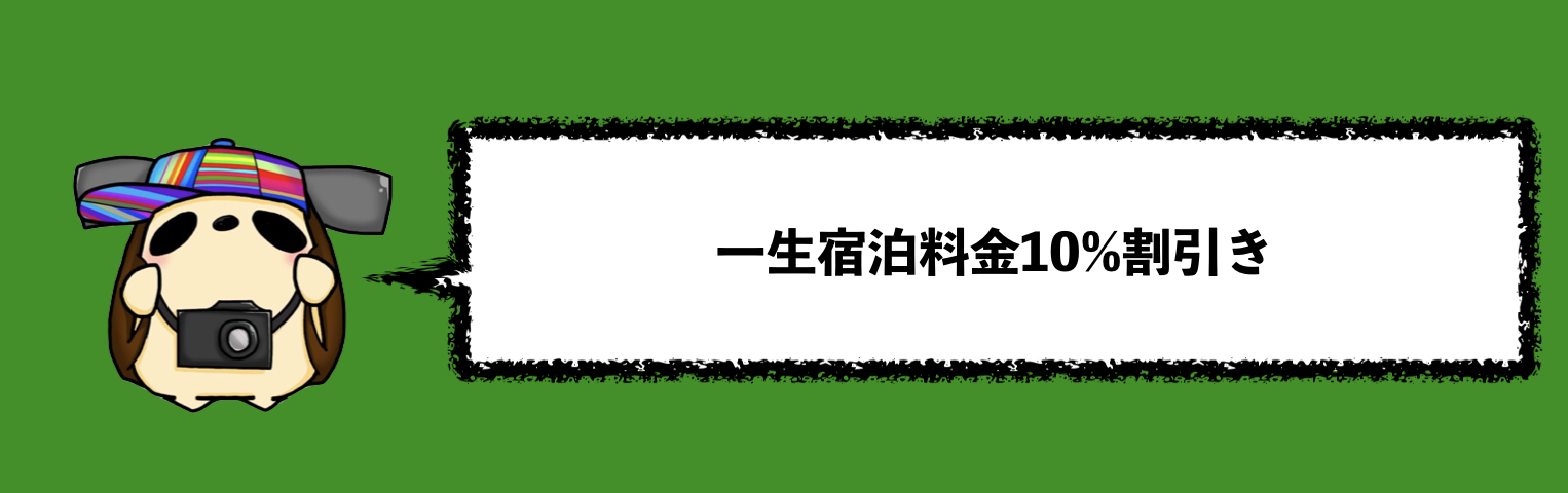 ・一生宿泊料金10%割引き