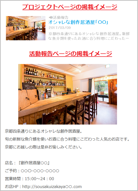 〇【campfire限定】campfire活動報告でお店をPR掲載させていただきます。