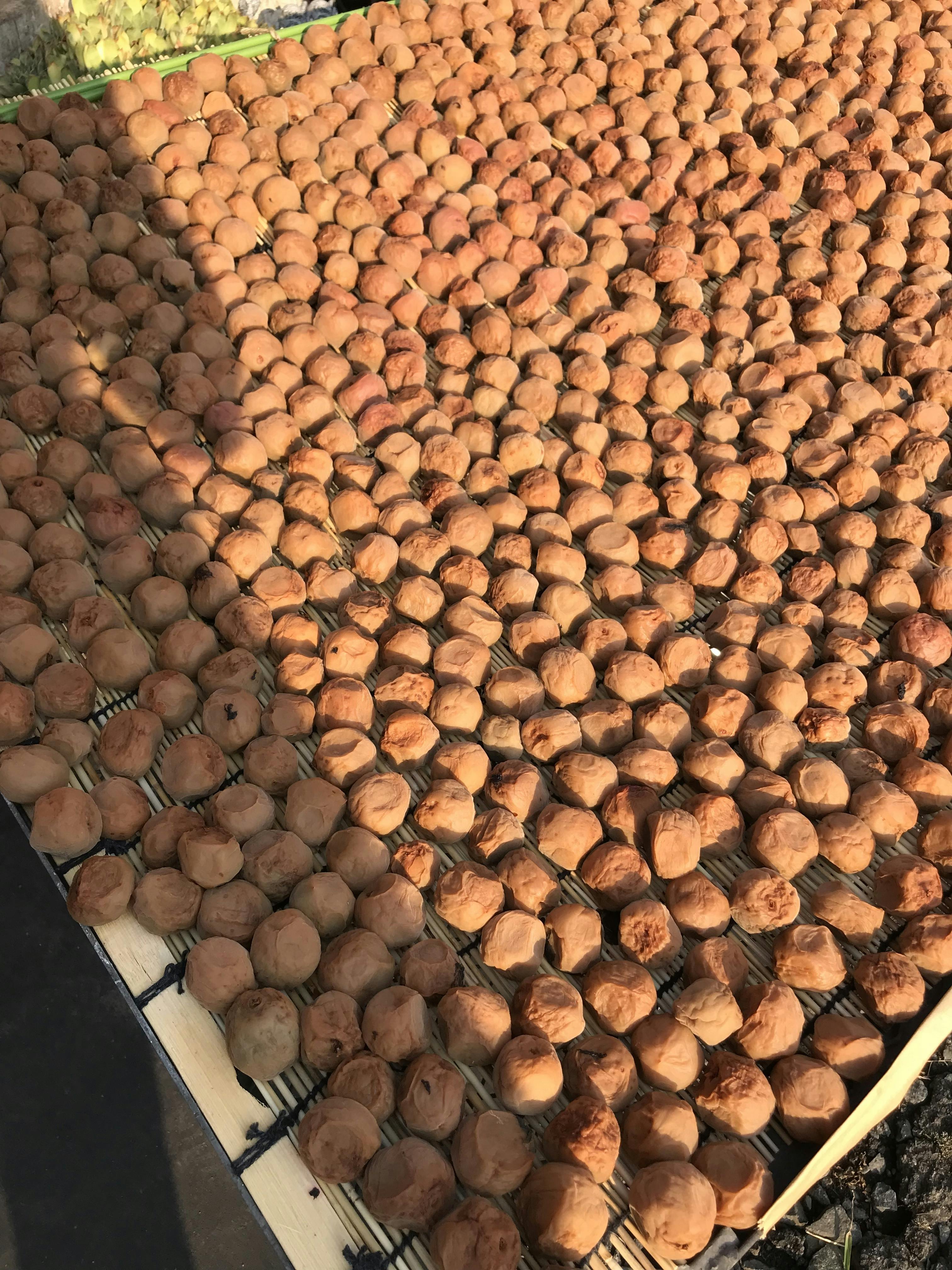 秋にはブドウ狩りなどもできます!そして本日伺ったら、ちょうど梅干を干してました!!!