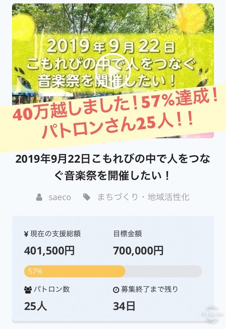 あと43%と道のりはまだまだ厳しいのですが、最後まで…こもれび音楽祭を開催し支援してくださった皆様によい報告ができるよう、がんばっていきます!