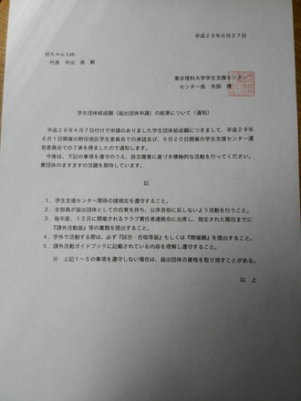 2017/07/22 11:49坊ちゃんLab.TOKYOは先月6月20日をもって、東京理科大学において正式に届出団体となりました!多くの方々の期待に応えられるよう、東京理科大学初チームとして、全力を尽くしていきたいと思います! もっと見る