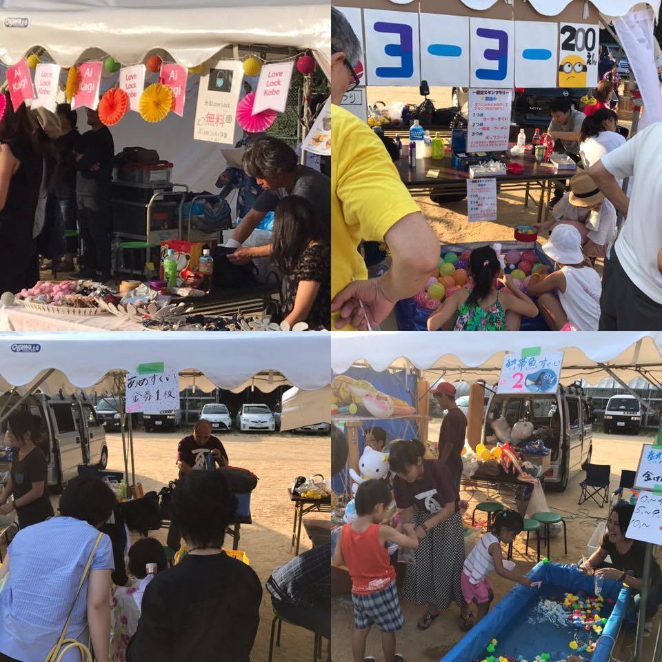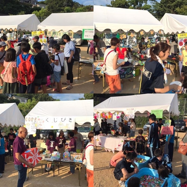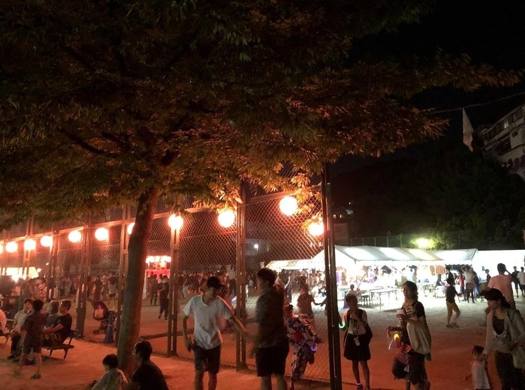最後は、鍵盤ハーモニカのパイオニアのミュージシャンが、夏の終わりと秋の訪れを奏で、婦人会や地域の大人・子どもによる盆踊りの輪ができます。グランド内外ではPTA/婦人会/小学校スポーツクラブ/町内会の方々による、夜店も開かれています。