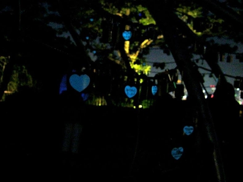 ▼1000万ドルの夜景をバックに♡の蛍光塗料が施された南京錠で愛を誓う▼