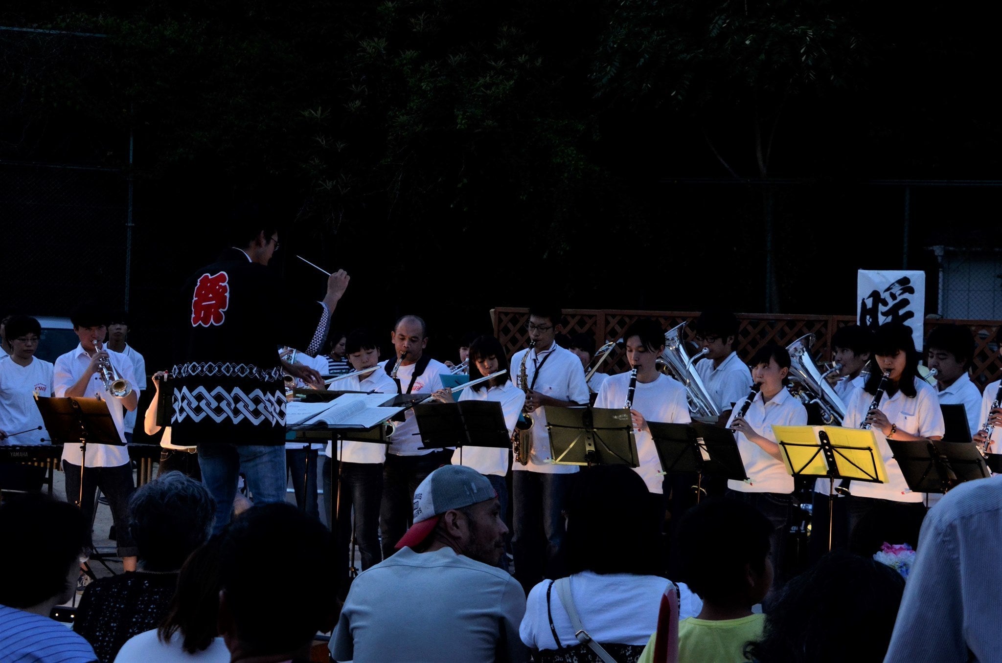 夕闇迫る頃は神戸山手学園吹奏団の演奏があり、すっかり陽が落ちたころを見計らってスティールパンが鳴り響きます。