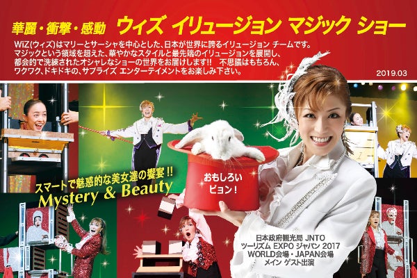 チームWiZ(ウィズ)は、日本に唯一の本格的なイリュージョンエンターティメント集団です。メンバーにはマリーを中心としたマジシャンをはじめとして、元宝塚や元劇団四季、海外のパフォーマーなど色々なジャンルのプロフェッショナルが集まっており、活動実績もある集団です。