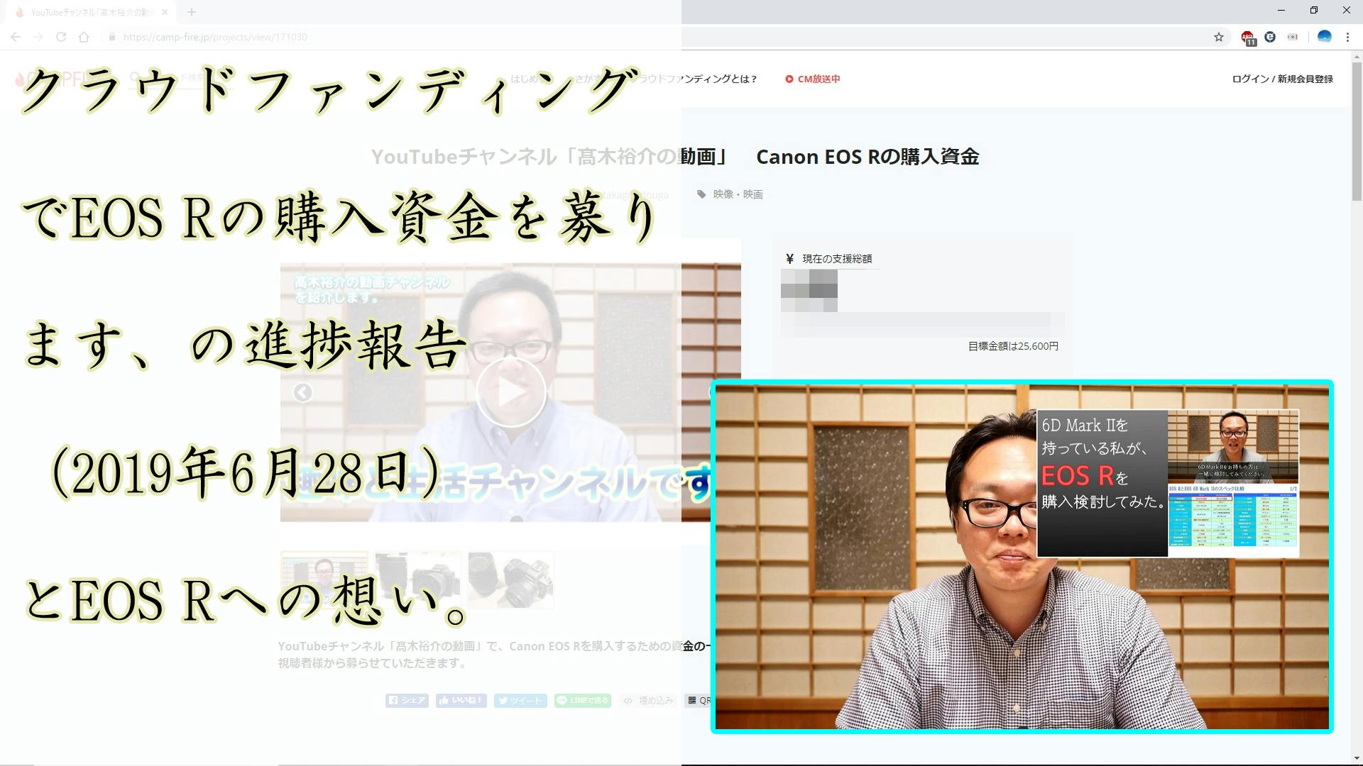クラウドファンディングでCanon EOS Rの購入資金を募る件の進捗報告と、