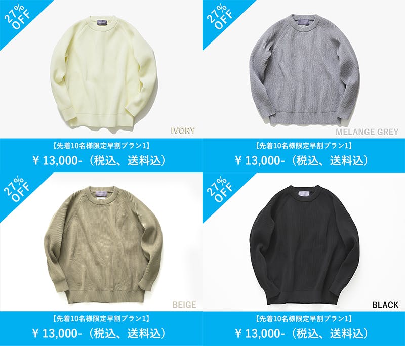 ストレスなく安心して着られる新しい価値をもつニットを一人でも多くの方に知って頂き、着て楽しんで頂けたらと思い、今回のプロジュクトを企画致しました。