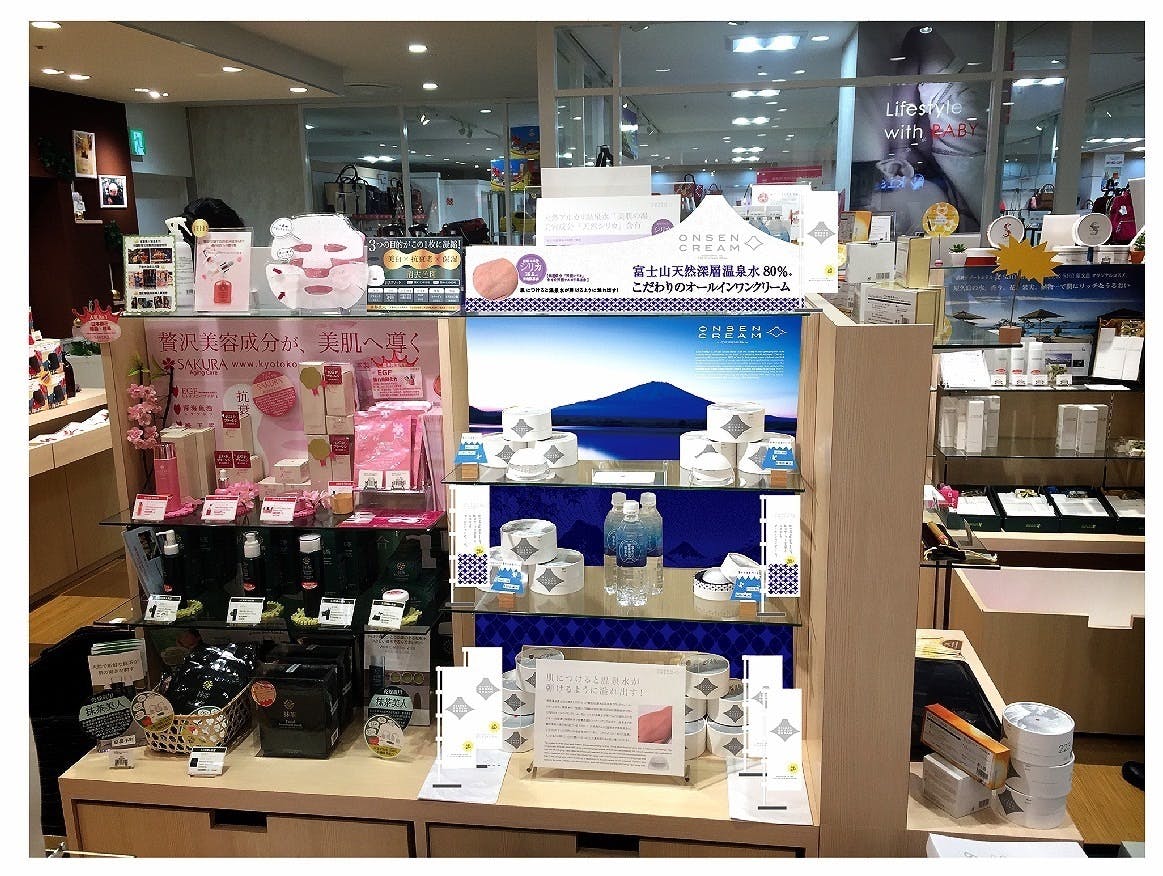 弊社会長が3年半の歳月をかけ、富士山の標高900mに温泉を掘り当てました。その温泉水は、コラーゲンを生成し、肌細胞を活性させるアンチエイジング効果があり、天然の美容液と言われるほどの成分を含んでいます。富士山温泉水を配合したフェイスクリームを販売していましたが、3年かけて少しずつ販売先も増えてきた矢先に、工場の事故で在庫がすべて破棄になってしまいました。