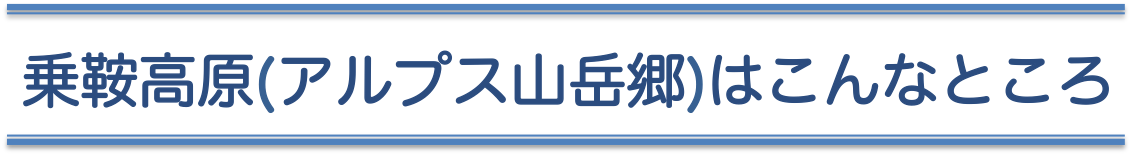なお、アルプス山岳郷とは、乗鞍高原を含む旧安曇村の上高地、さわんど、白骨温泉、そして奈川村だった奈川の地域を指し、アルプスの玄関口として共に地域活動を行っているエリアです。以下、乗鞍高原と言及する時にはアルプス山岳郷全体を指します。